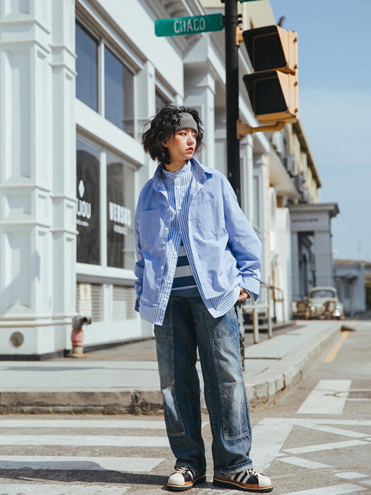 得益于街风十足的风格设计,这款衬衫对于个性魅力的彰显,有着十足的助力。下身可选择一条黑色的侧边条纹休闲裤,既拉长比例又十分显瘦,传递自在随性的生活理念,搭配一双酷炫白色的简约风格休闲鞋,和衣服相辅相成又彰显品味。