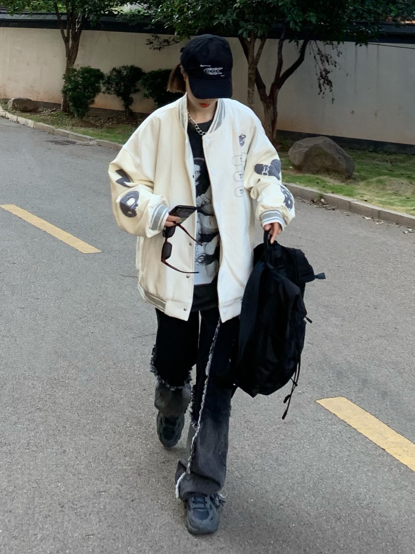 修身版型,短款设计,能更好的从视觉上拉伸身材比例,更显高挑;经典棒球领,黑白相结合,质感十足;胸前独特的字母图案,个性十足,亮眼的选择哦~