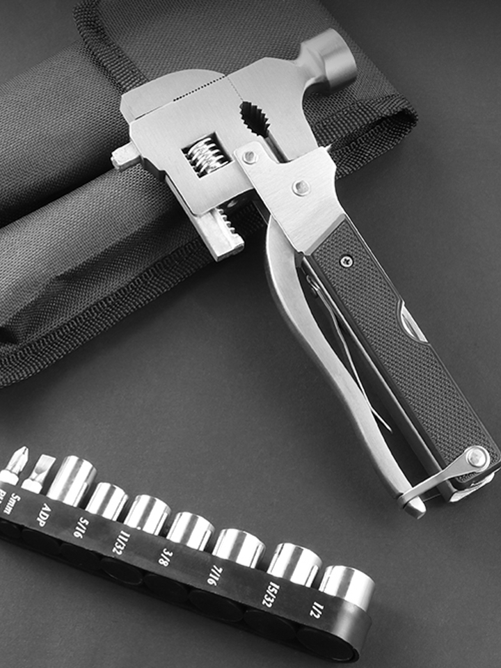 传统的工具箱杂乱无章而且太占地方,有了这款多功能工具再也无需担心,它集小扳手、套筒、改锥、内六角等各种机车配件于一身,可以满足你的各种需求,最重要的是还携带方便,不占空间。