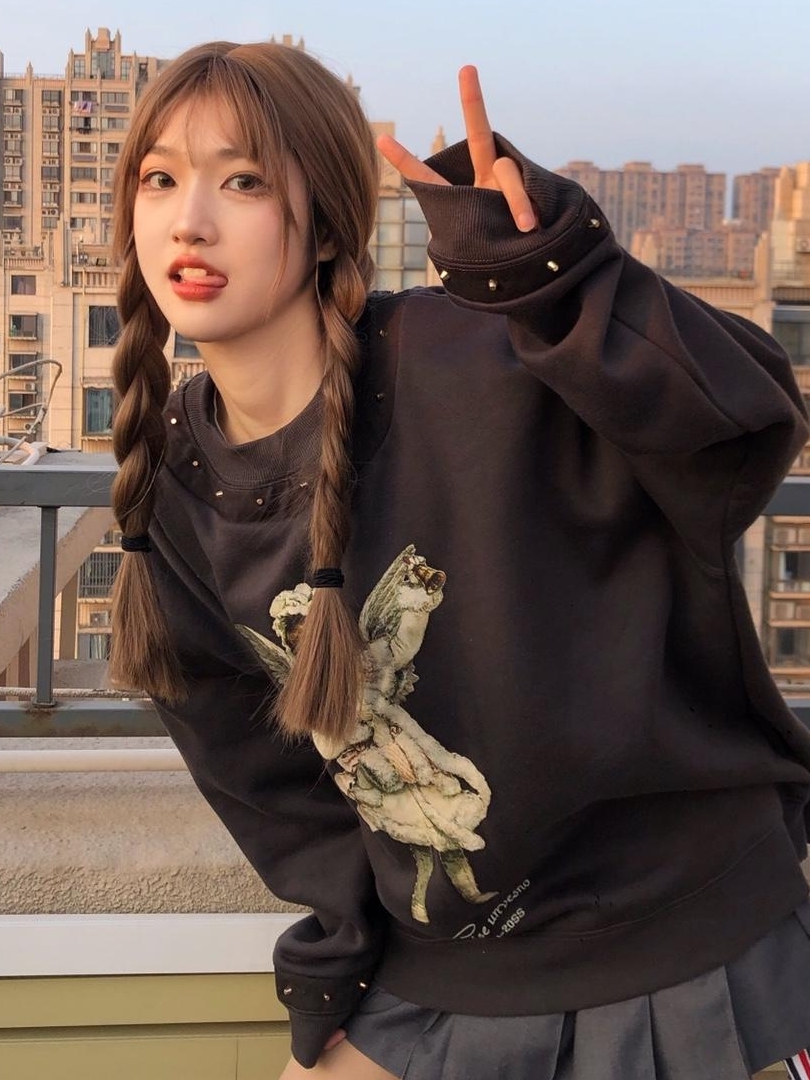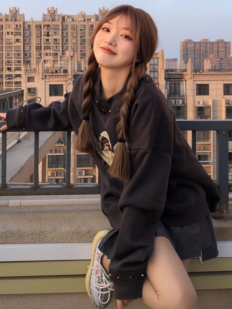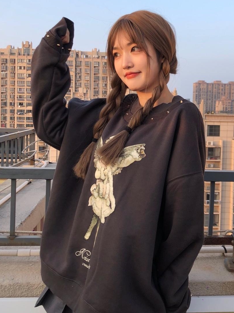 领口和袖口处增加了铆钉的元素设计,让“中规中矩”的卫衣有了一丝“反叛”的味道,精致的版型剪裁,穿上宽松慵懒,街头范十足。