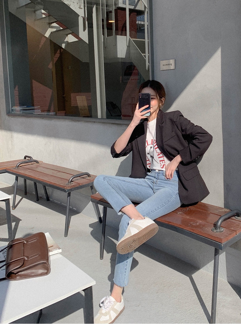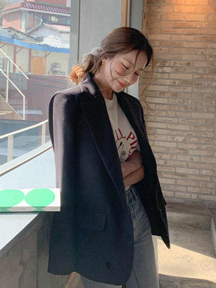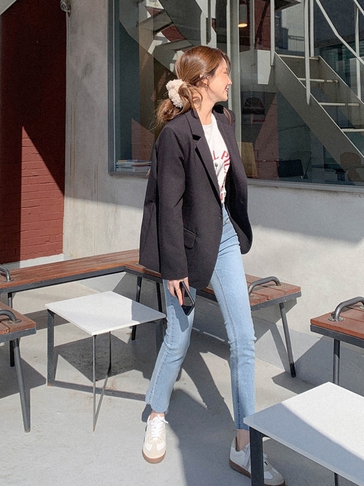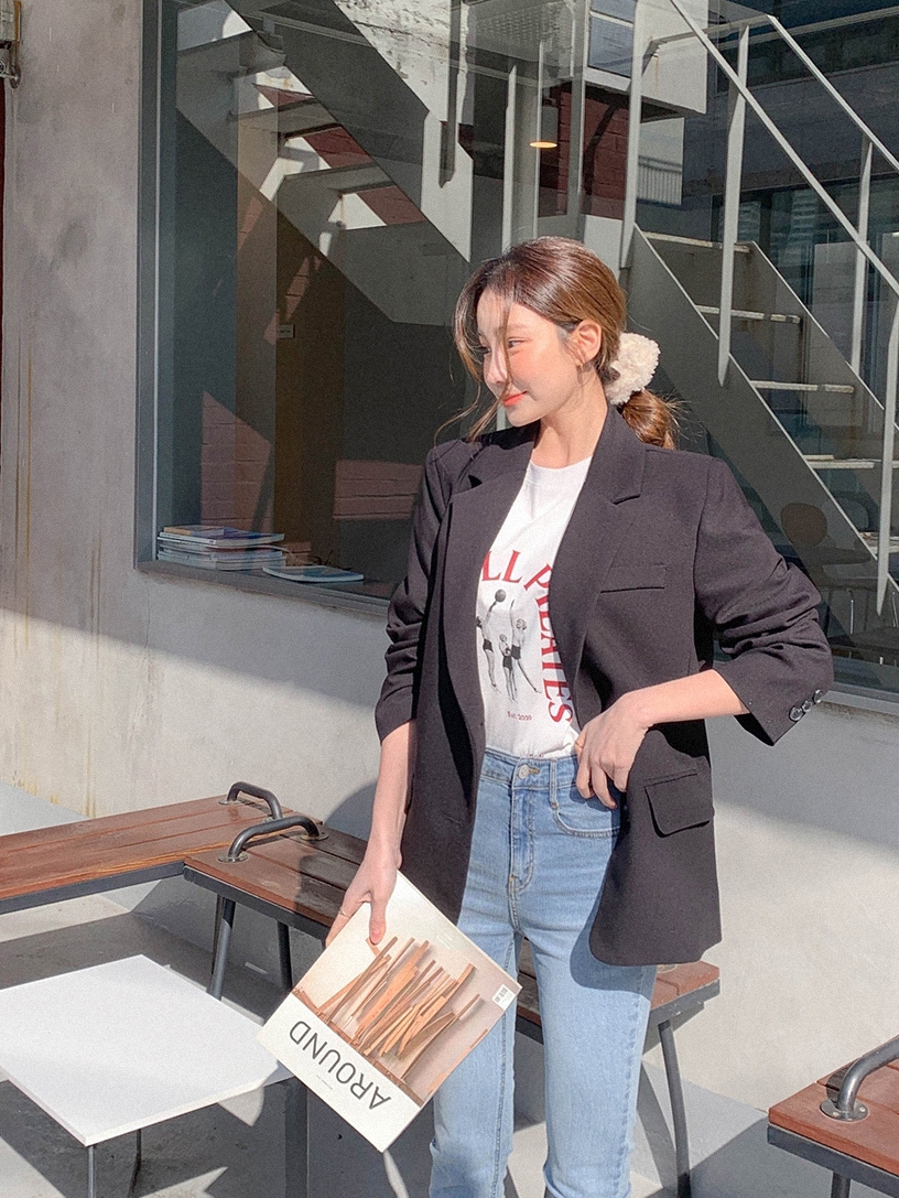 无论你是追逐潮流的时尚达人,还是上班白领,你的衣橱都需要这么一件利落的黑西装,没有多余的设计,流利的线条,极简的小翻领,上身气场十足。