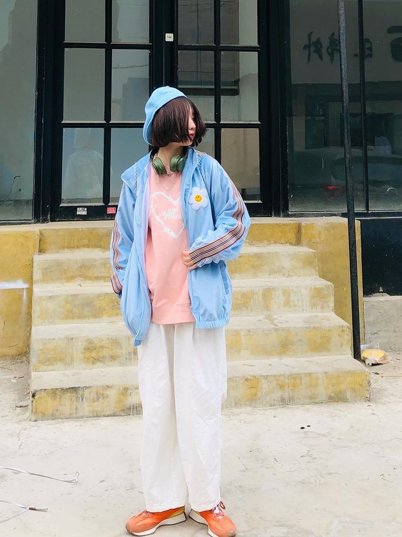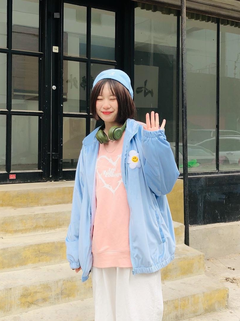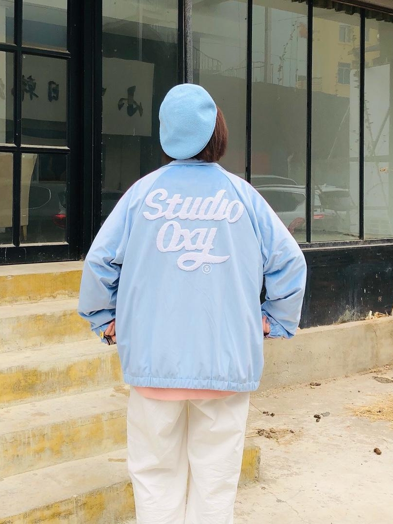 非常清新的一款夹克外套,穿上它,整个感觉都轻盈了呢,底摆和袖口用松紧收紧收成小花苞装,加上棒球服的版型,个性的印花,随便穿穿就很美呢。
