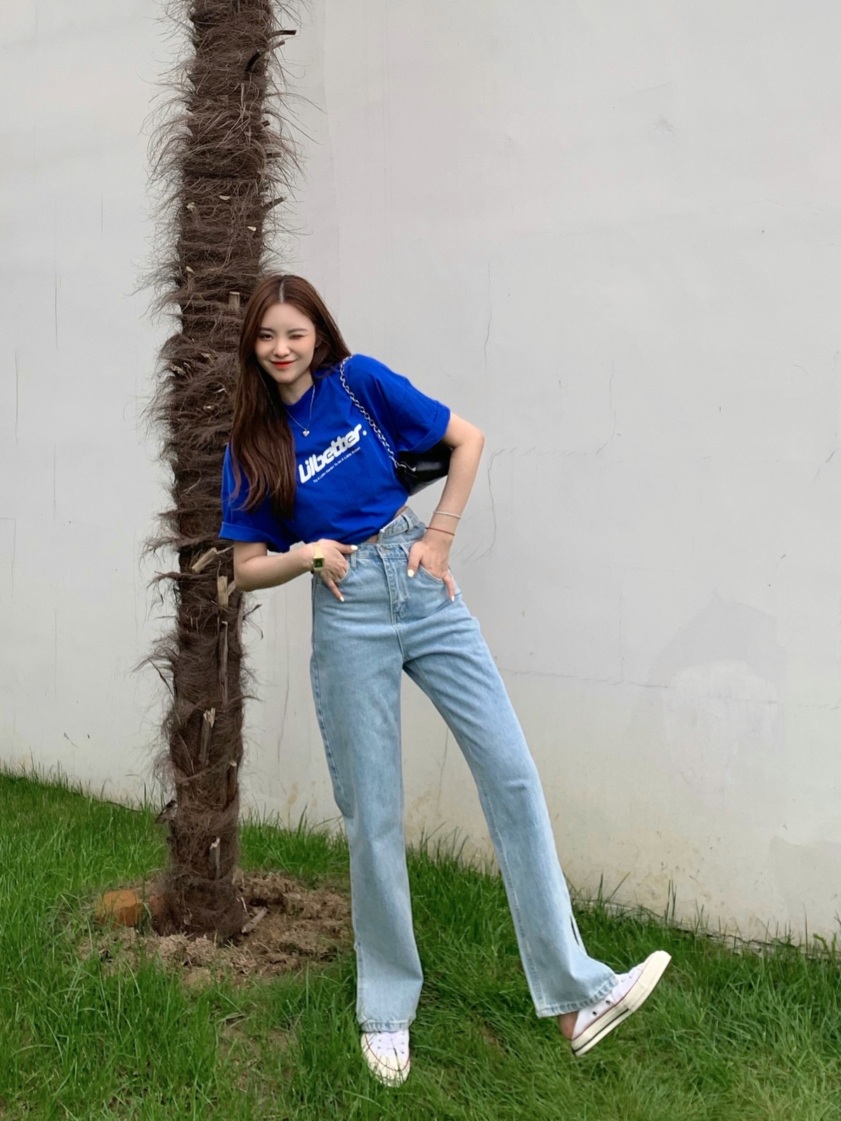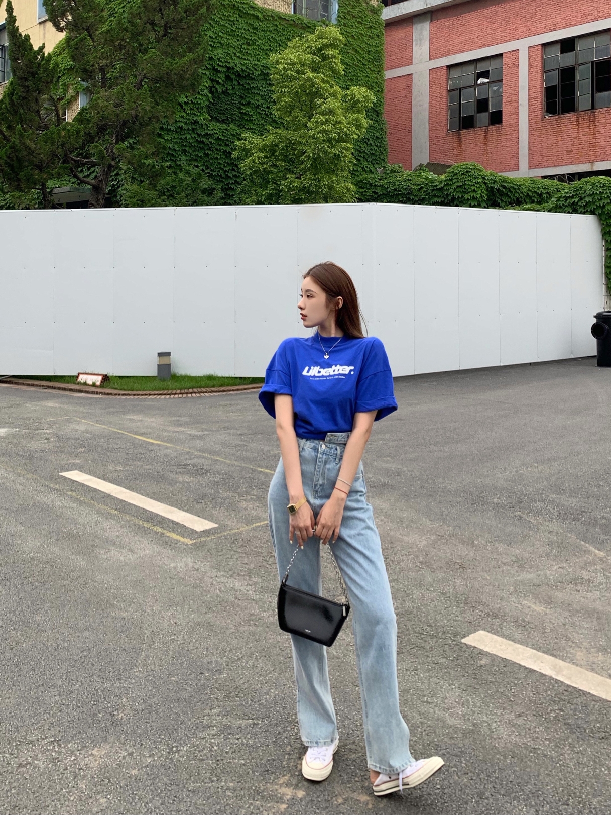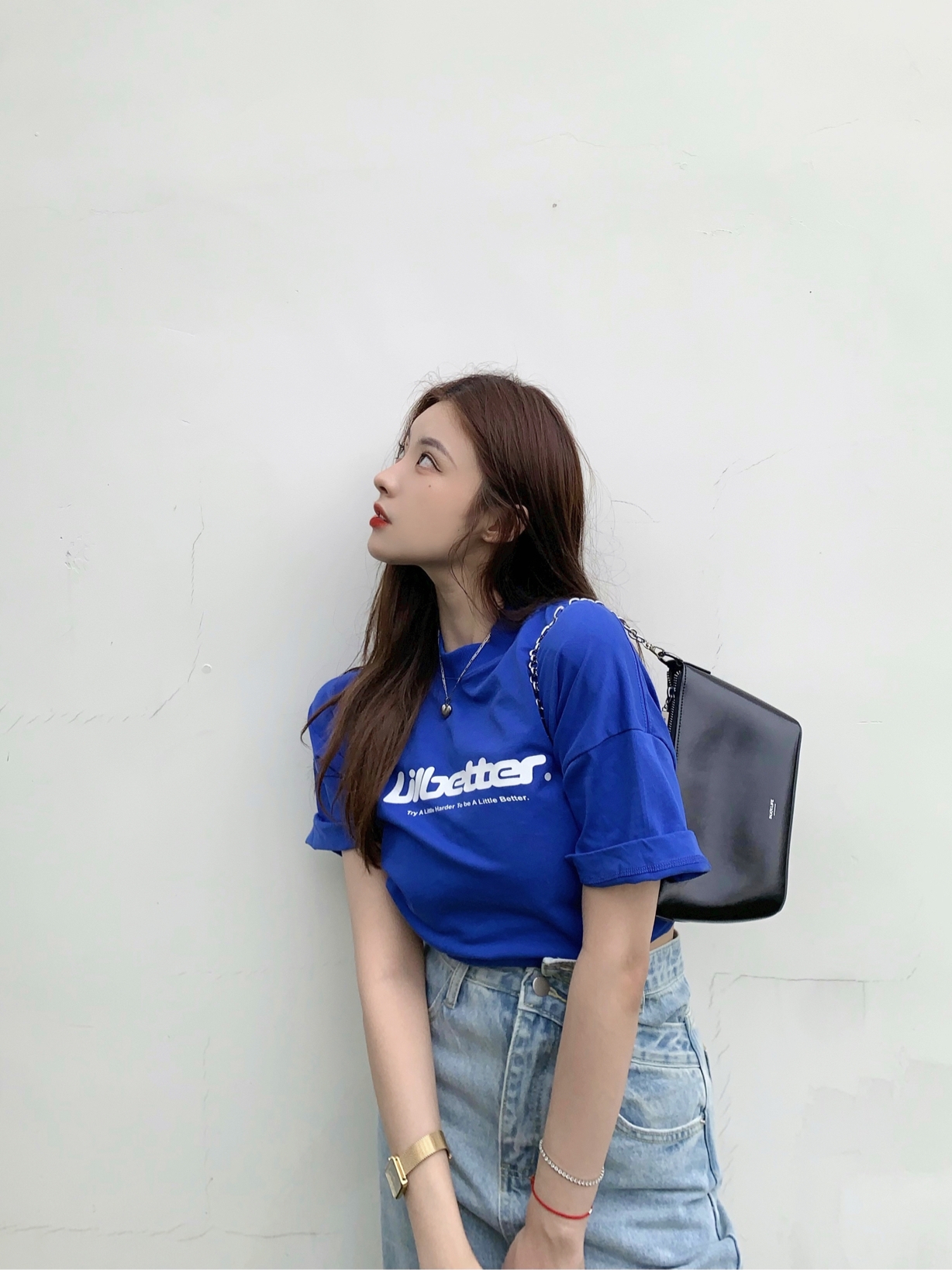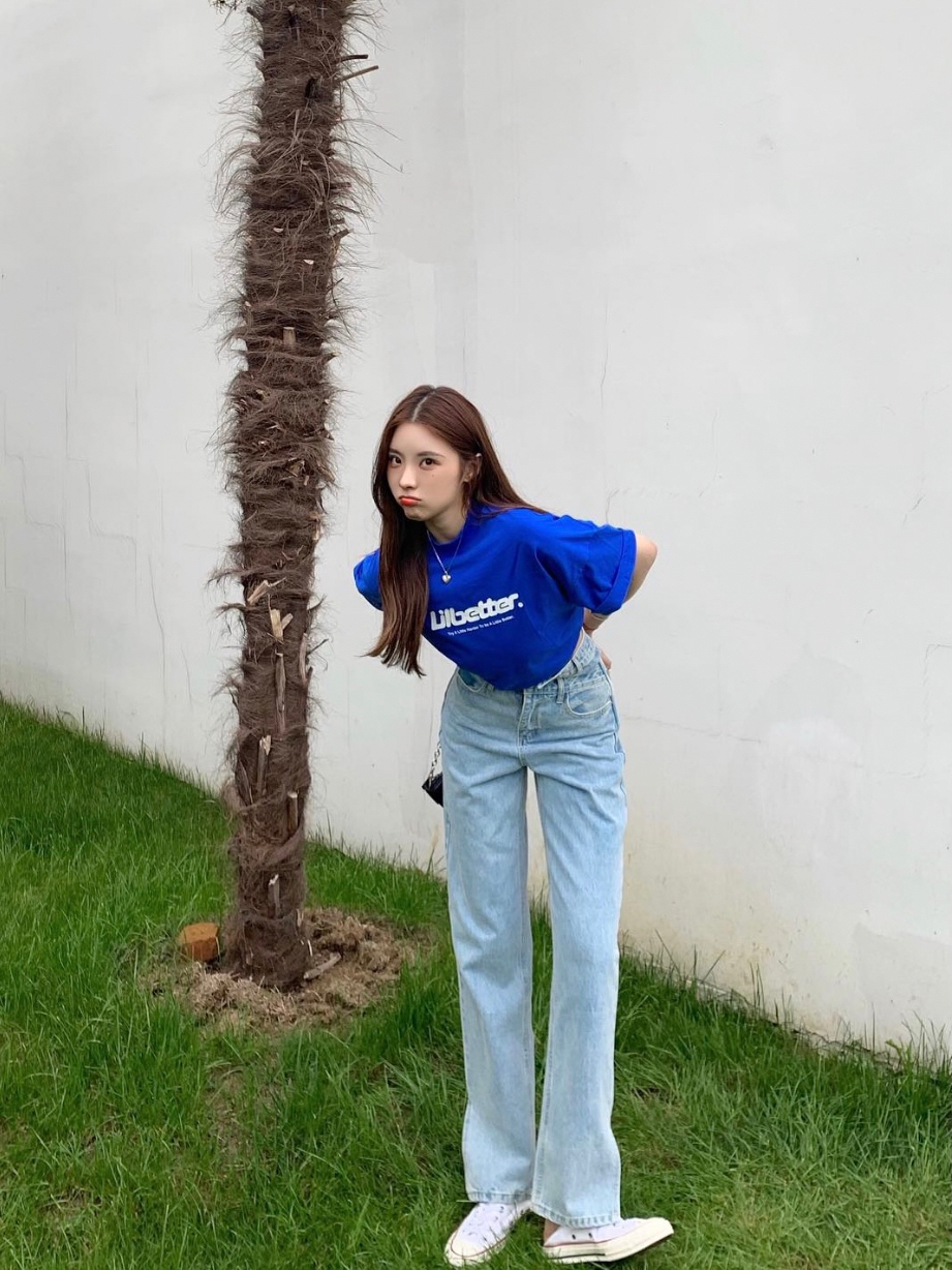 lilbetter这件T恤我一眼看中,宝蓝色搭配白色英文印花,ins风小姐姐即视感。而且超级舒服,我特意卷起来穿,也很好看。
