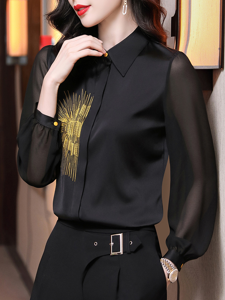 长袖衬衫采用聚酯纤维面料打造,它的厚度适中,具有不透光的优点,避免职场穿搭走光的烦恼。雪纺兼具挺括性与垂坠感,既能塑造合身立体的版型,又展现了流畅利落的线条感。主要的成分是涤纶,抗皱性极佳,减少日常熨烫次数,打理轻松方便。