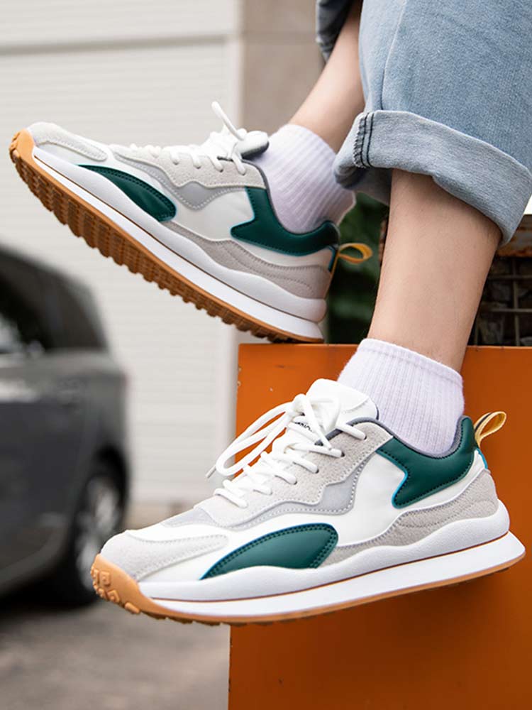 时尚大方的一款鞋子,个性的撞色条纹点缀,打破单调沉闷感,丰富鞋身造型,很是时尚吸睛。经典的系带款式,松紧可以自由调节,适合各种脚型的人。平底款式,随性自在。