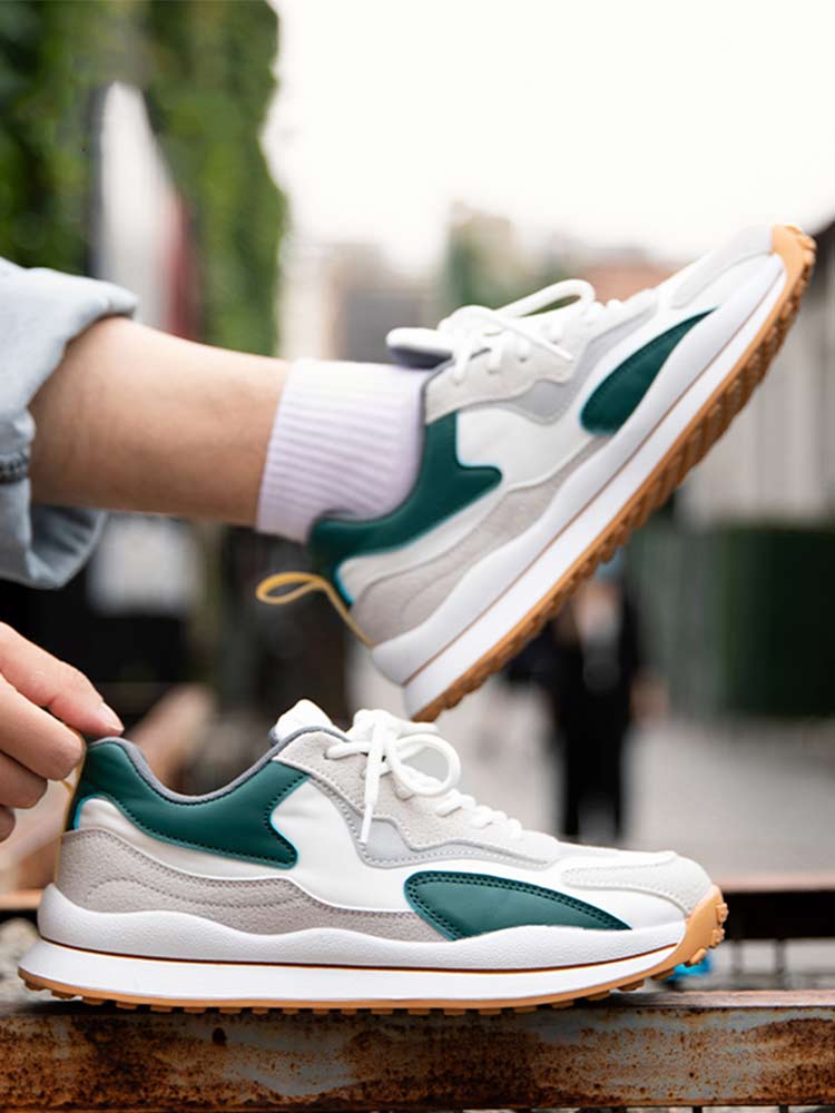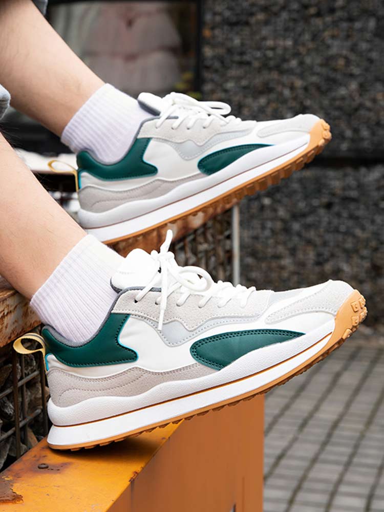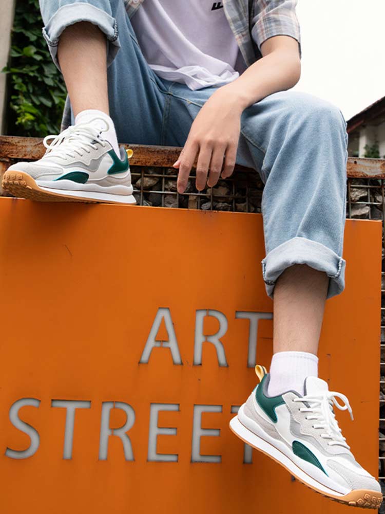 EVA橡胶大底,提供足够支撑,轻质缓震,为你的出行保驾护航。鞋型立体挺括,带来活泼灵动的青春感。皮革拼接设计,兼具透气性和稳固性,穿着更加舒适。便携提拉带设计,穿脱便捷方便。
