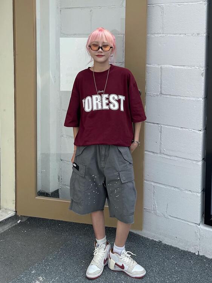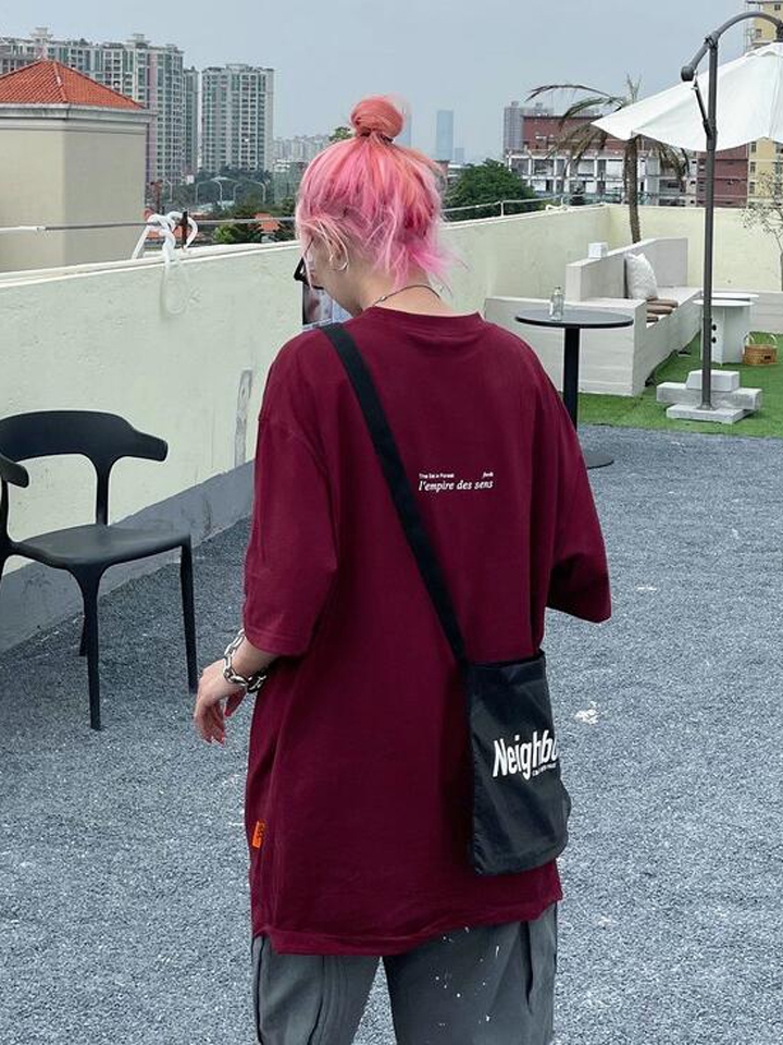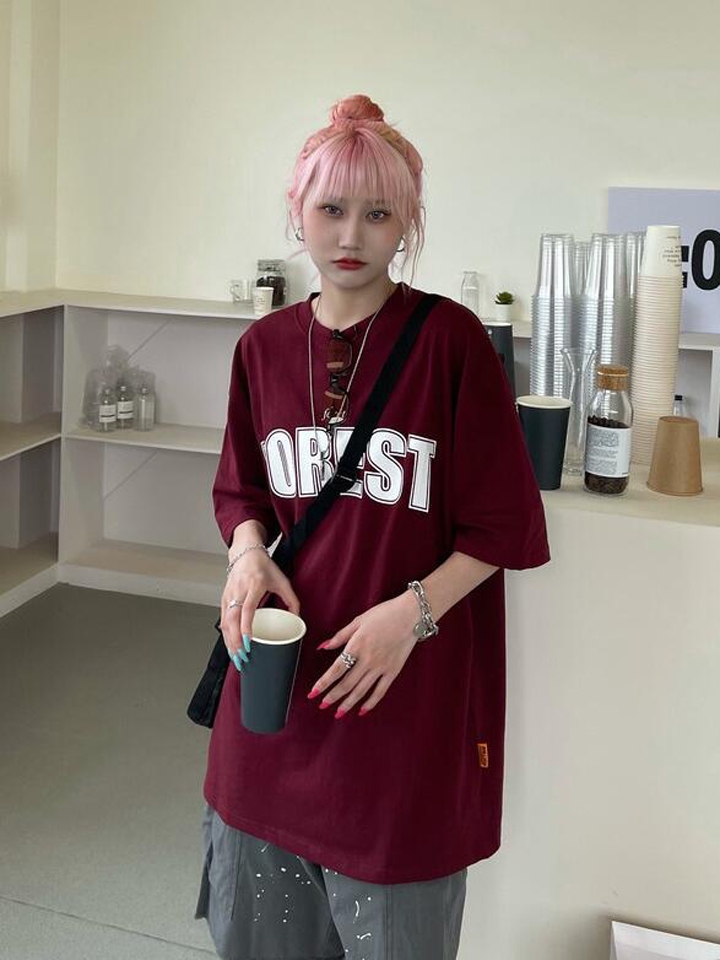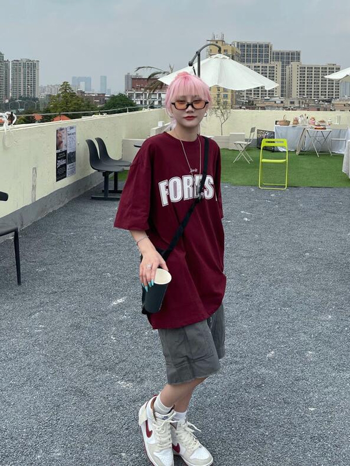 这款t恤是简约的风格,宽松的版型,时尚百搭,胸前的字母印花,很有个性,搭配牛仔裤或者短裤都很好看。