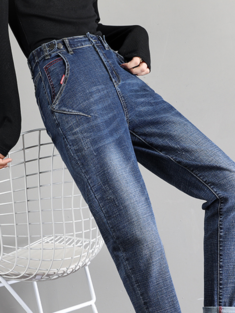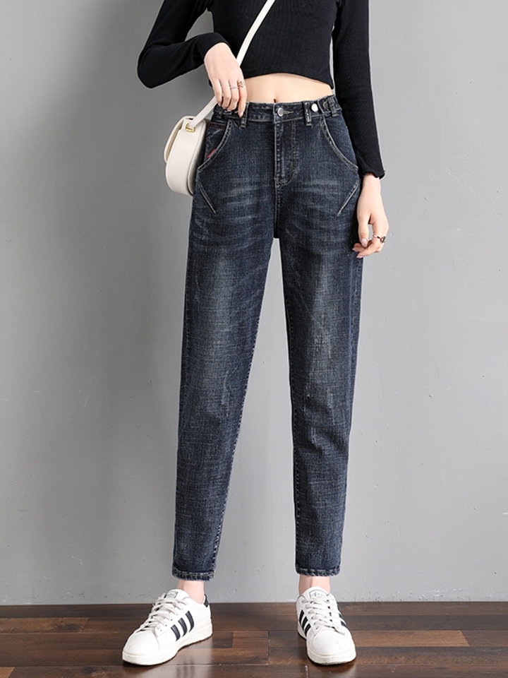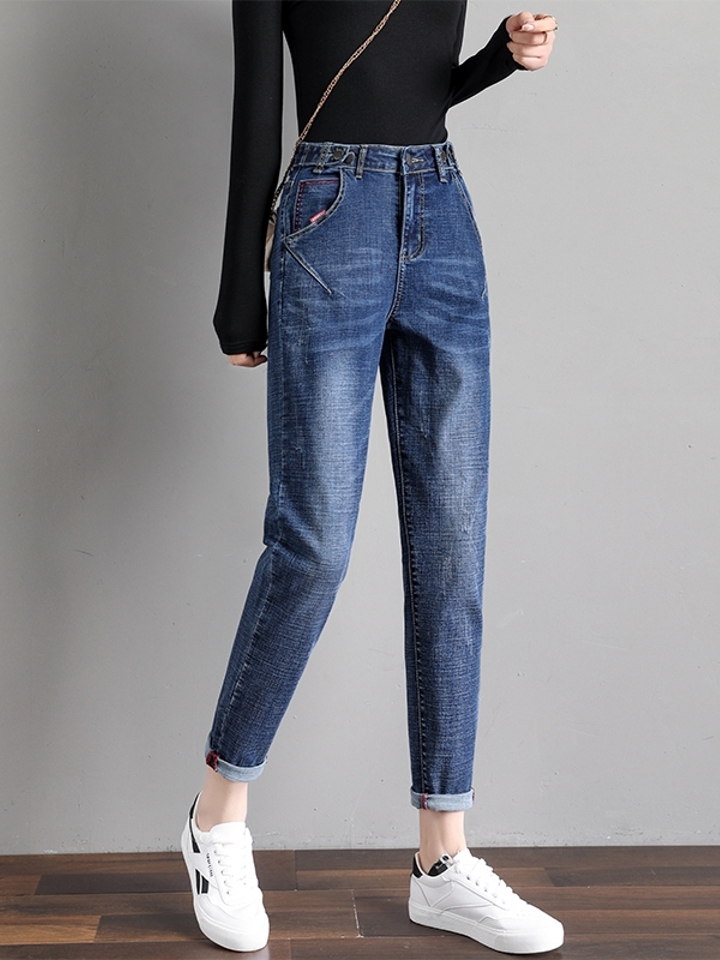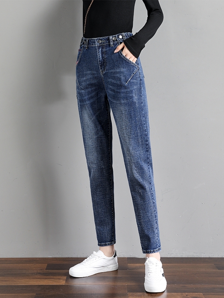 时尚减龄,轻松拥有大长腿,这款诗美芝牛仔裤,哈伦版型提臀,收腰,小裤脚,胖瘦皆宜,包容性强。