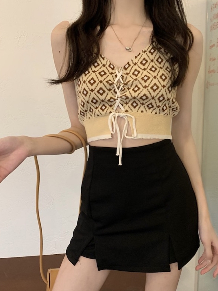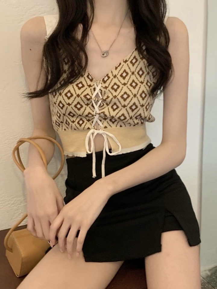 纯欲风抹胸设计感性感背心,勾勒出了胸前的轮廓,真的怎么看怎么性感。