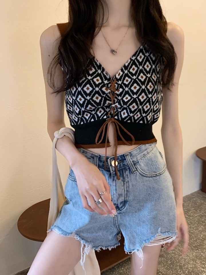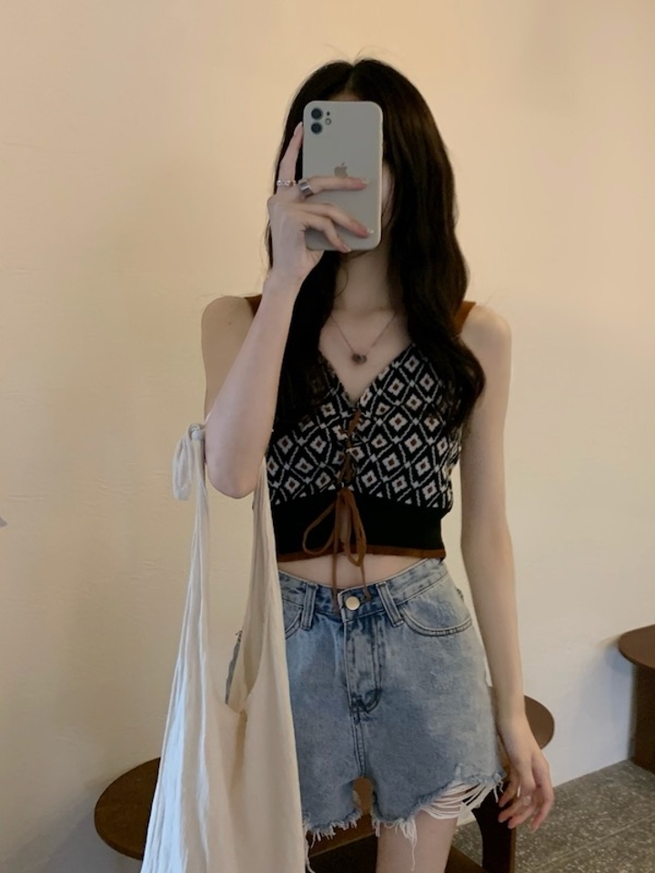 时尚吊带背心搭配牛仔裤,凉鞋,潮范儿十足。