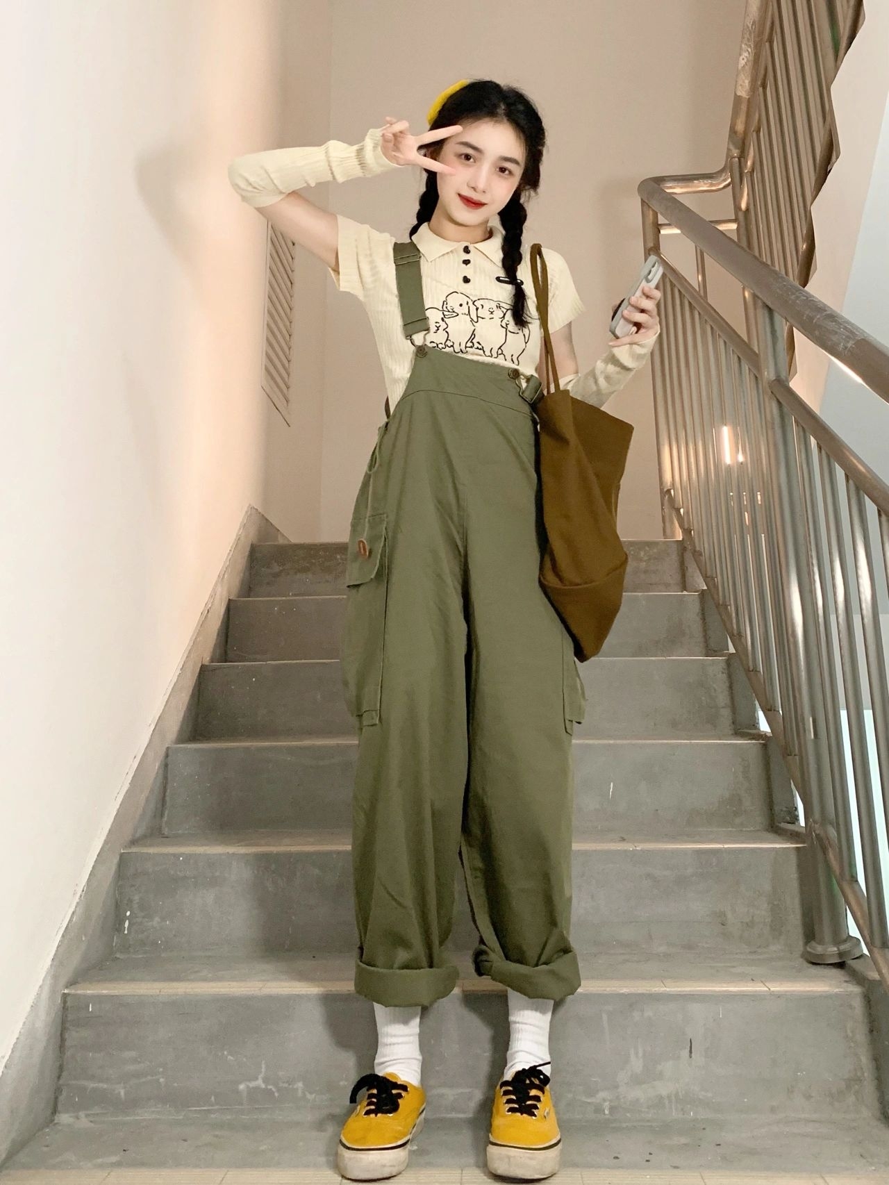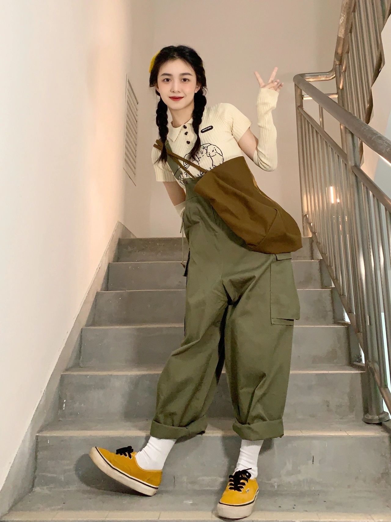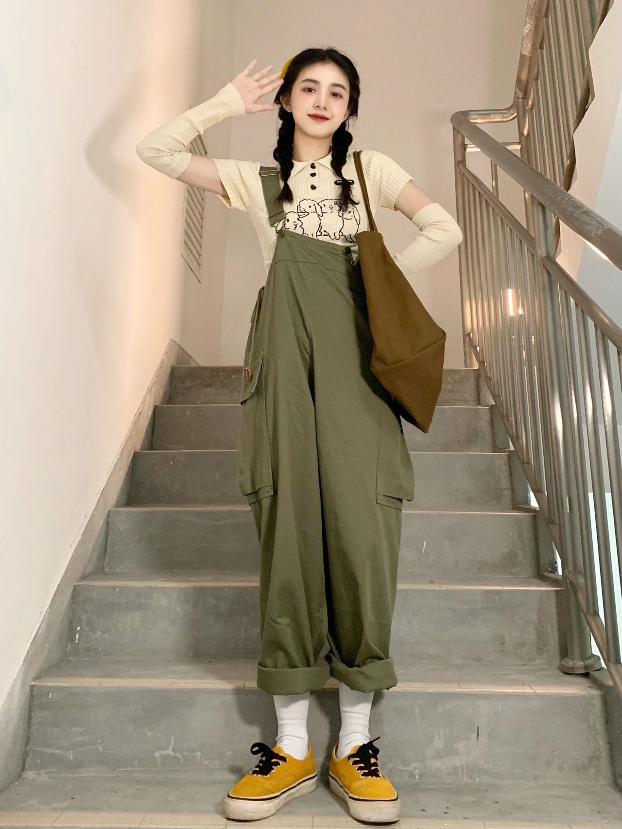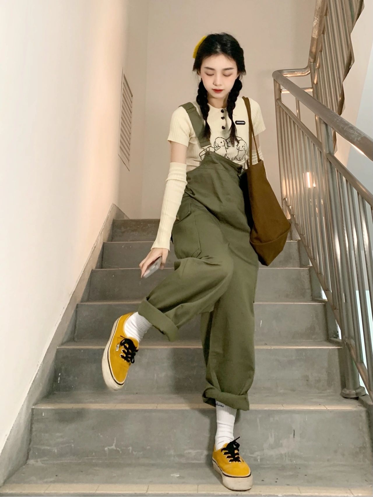 秋季穿搭,初秋韩系复古ootd邻家女孩,这个配色有没有似曾相识哈哈哈~衣服上的小兔几太可爱了,整套look的亮点都在这里啦,其他的就简简单单干干净净,颜色舒服日常生活中就很好看了!背带裤配紧身上衣也好看,不一定要穿卫衣哦!