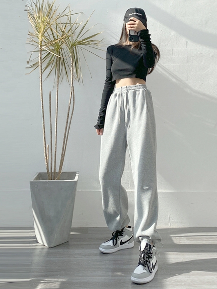 浅浅的灰色,耐看不俗气。宽宽松松的版型,遮住腿部多余赘肉,上身轻松显瘦。选用朴素自然的灰色,简约大方,方便穿搭。