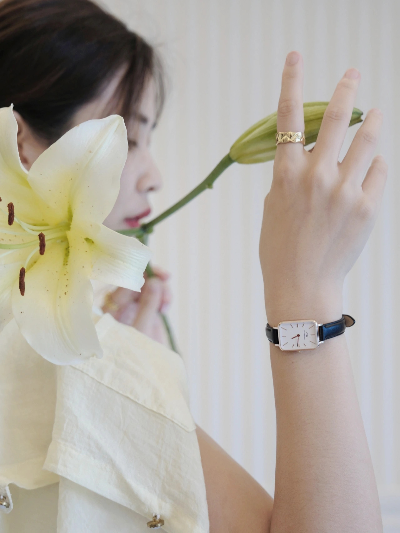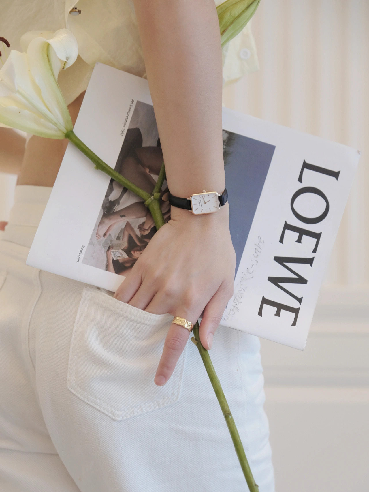 真滴好喜欢这款腕表啊!它给人简洁大方的感觉,迎合着极简的现代风,令我和这个世界的距离靠近,方形表盘设计,利落感十足,也让英气展现。