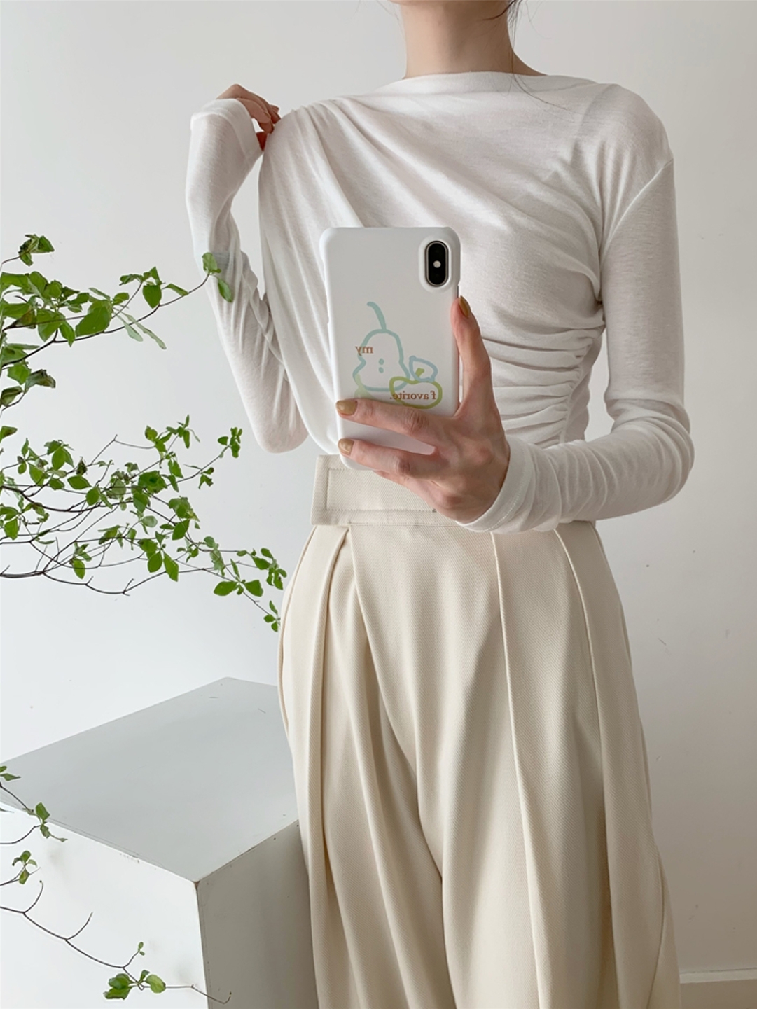 简约的高腰设计,搭配上修身的版型,上身显瘦又显高。