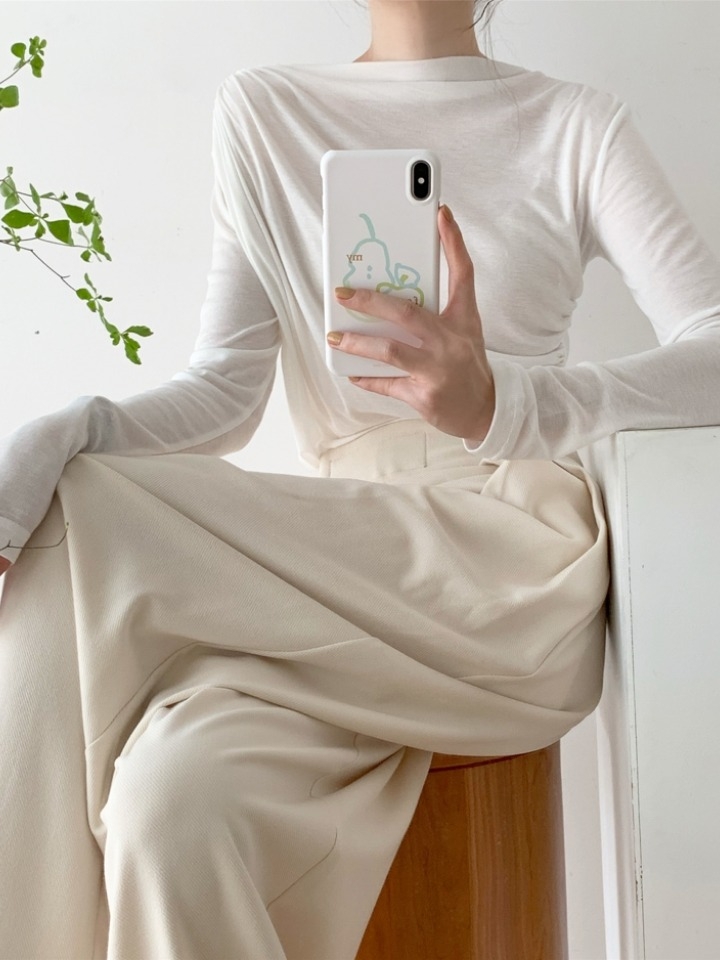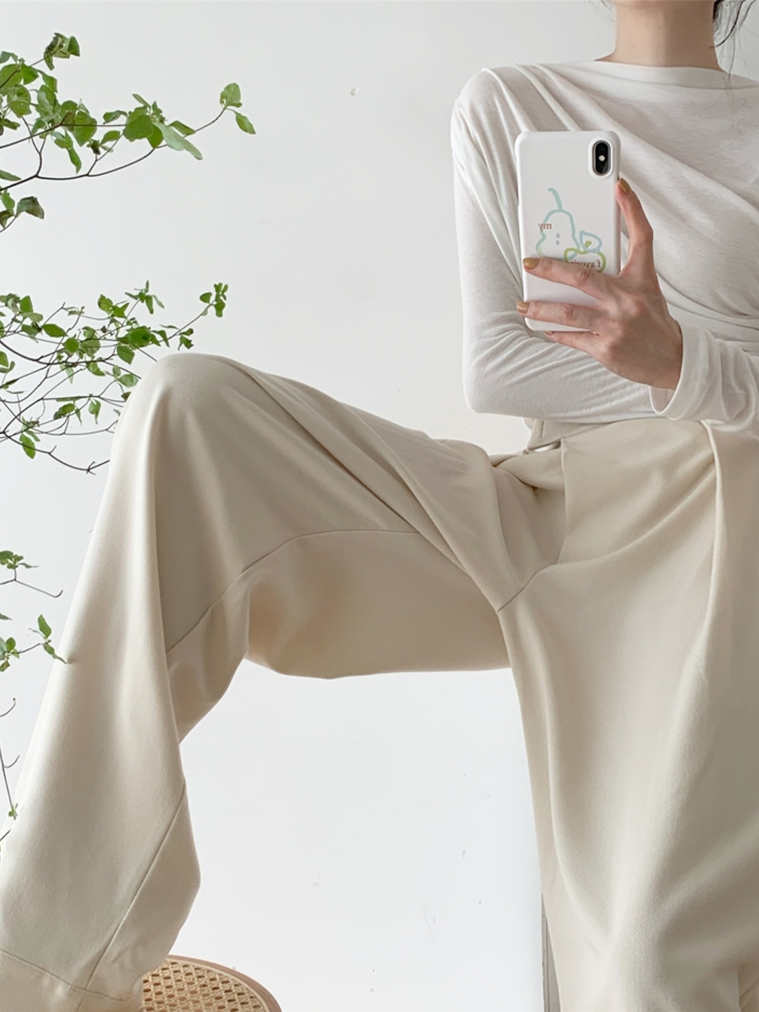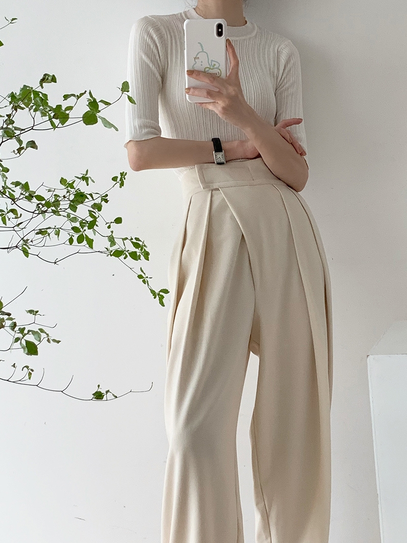 高腰的设计,拉长腿部线条,显瘦效果很好,高腰的版型,很显高挑,修身的剪裁,修饰腿部曲线,上身很有范。