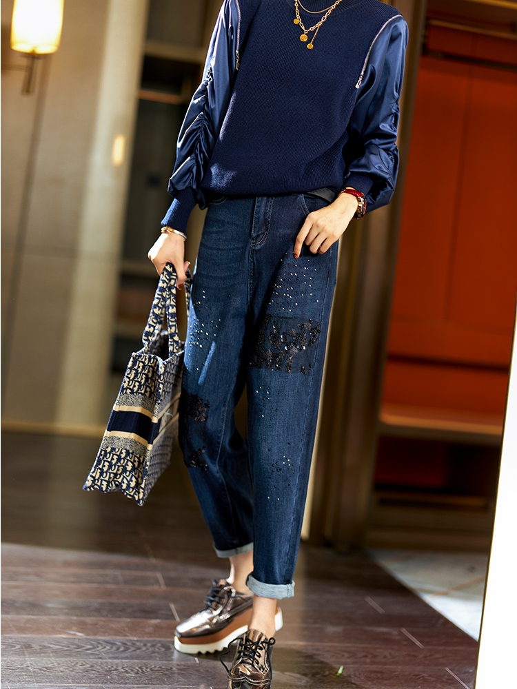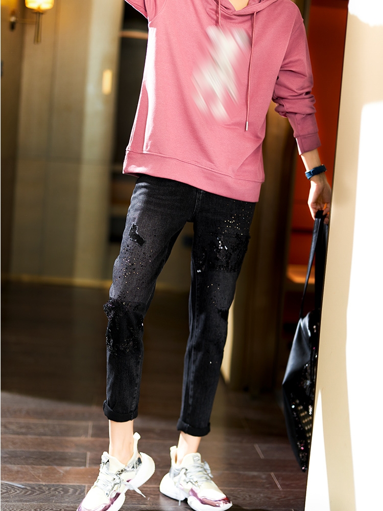 牛仔裤采用的是棉质的面料,没有弹性胜在宽松,也不会有束缚感。手感柔软,上身很亲肤,不会对皮肤有任何的刺激,还有着良好的吸湿透气性,在夏季穿着也不会有闷热感。平常搭配起来也非常百搭,不管是T恤还是背心吊带,满足多种风格。