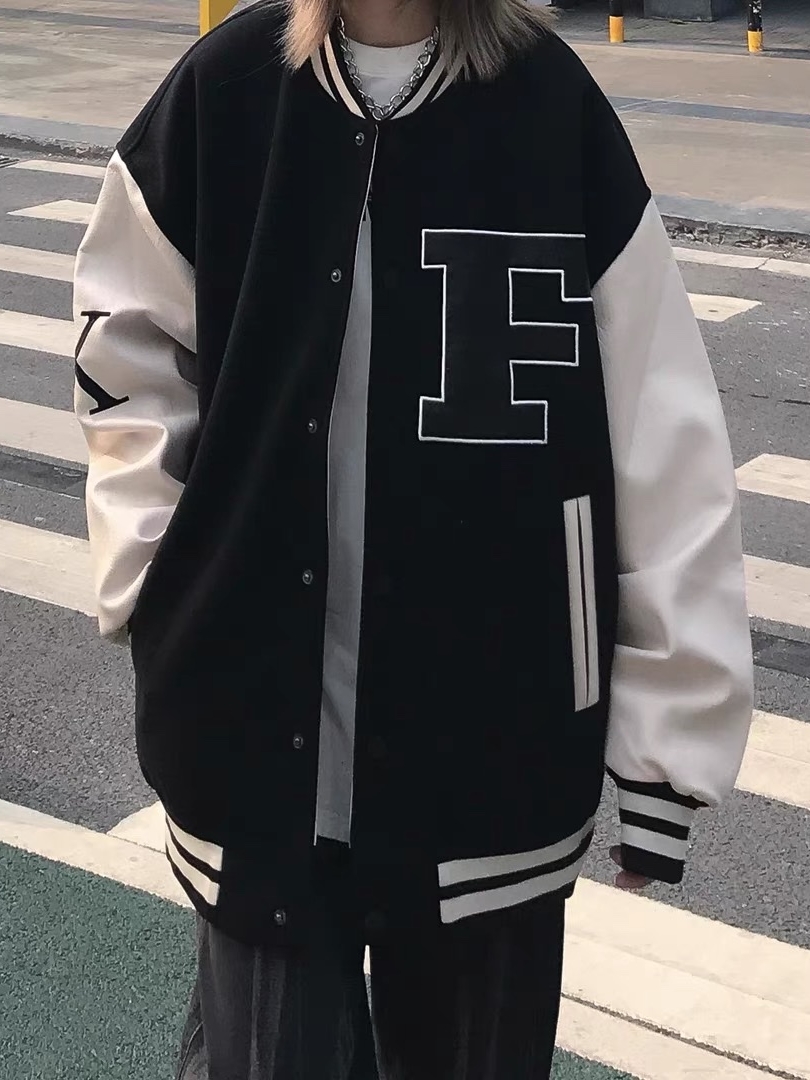 修身版型,短款设计,能更好的从视觉上拉伸身材比例,更显高挑;经典棒球领,黑白相结合,质感十足;胸前独特的字母图案,个性十足,亮眼的选择哦~