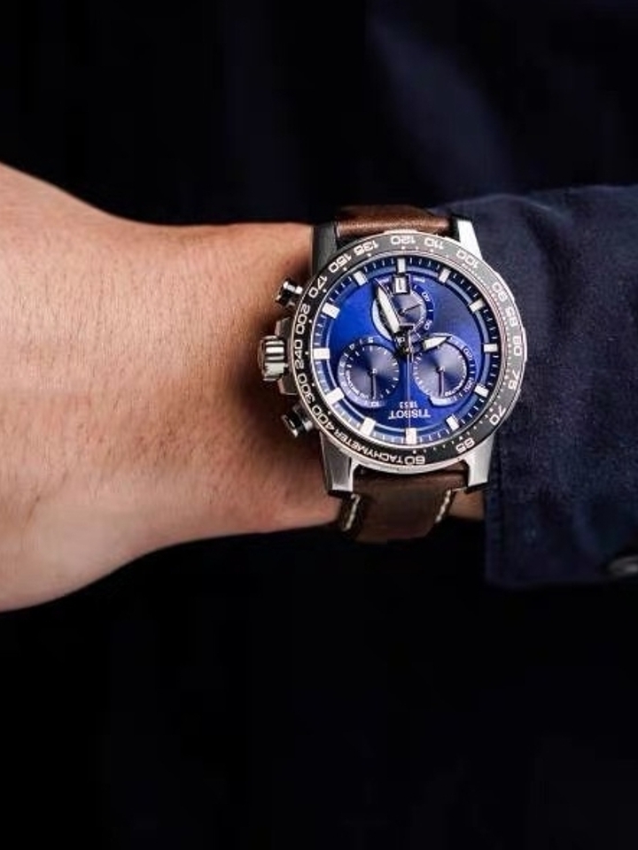 蓝宝色水晶玻璃镜面耐高温且抗冲击,流线型表链佩戴舒适,表扣易操作,表盘内增加三个多功能计时表盘,拥有更强大的计数功能,同时起到装饰点缀的作用。
