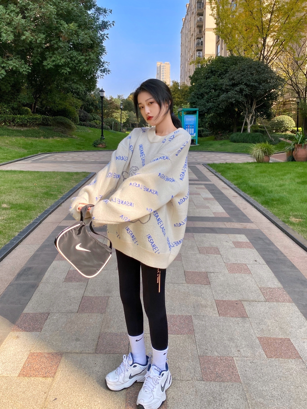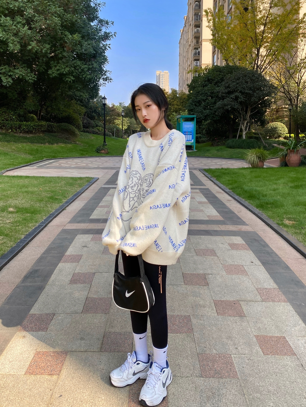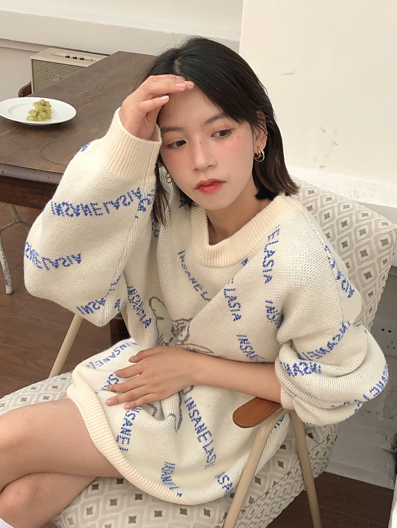 奶呼呼的小天使毛衣,超温柔的奶油色,看起来也太特别了吧!软糯糯的颜色再加上蓝色复古字母设计真的是绝了!就是很宽松的版型,穿起来有点男友风!