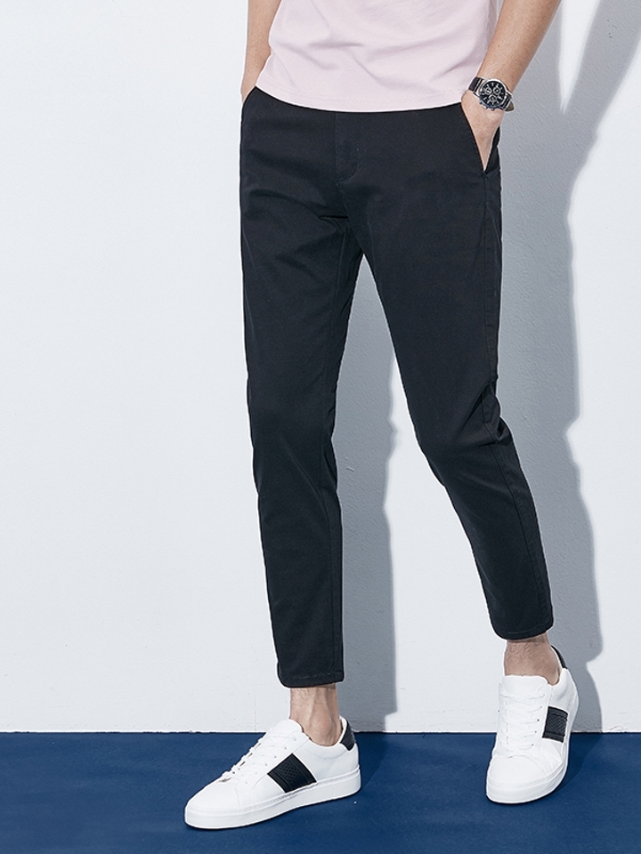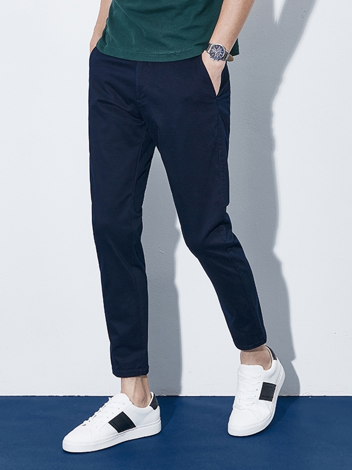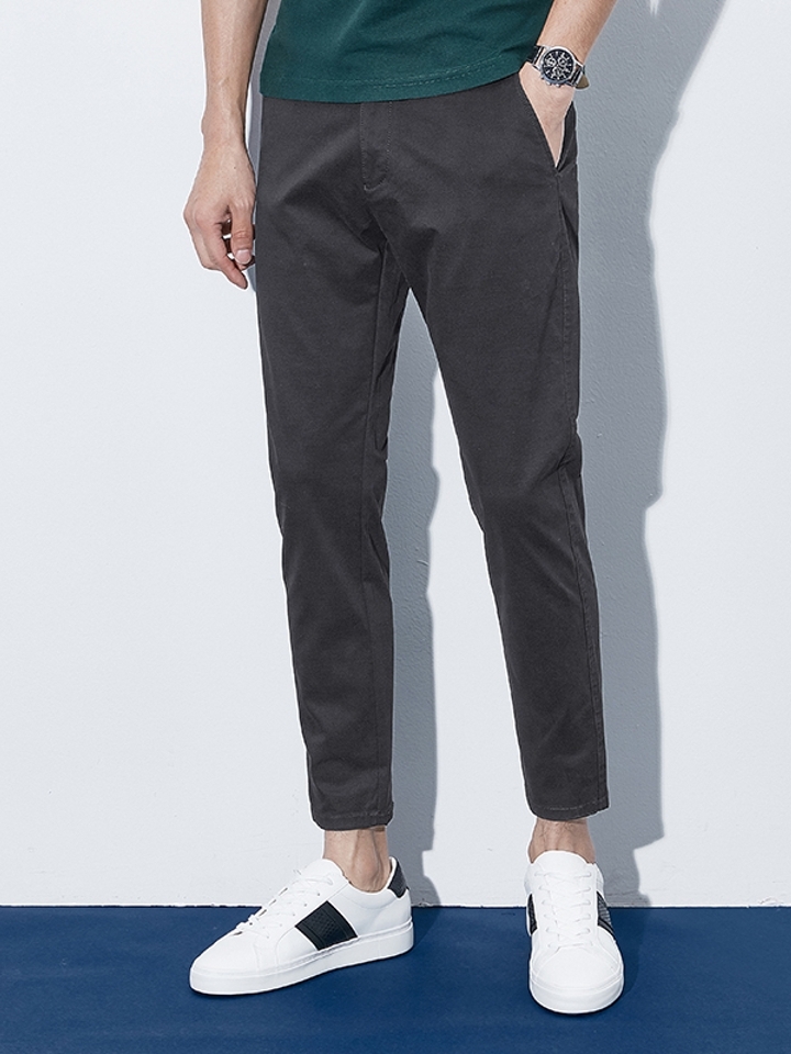春夏季薄款小脚裤 纯棉男士休闲裤 韩版修身免烫商务直筒工装裤潮 百分百全棉 清爽透气 韩版修身 时尚有型