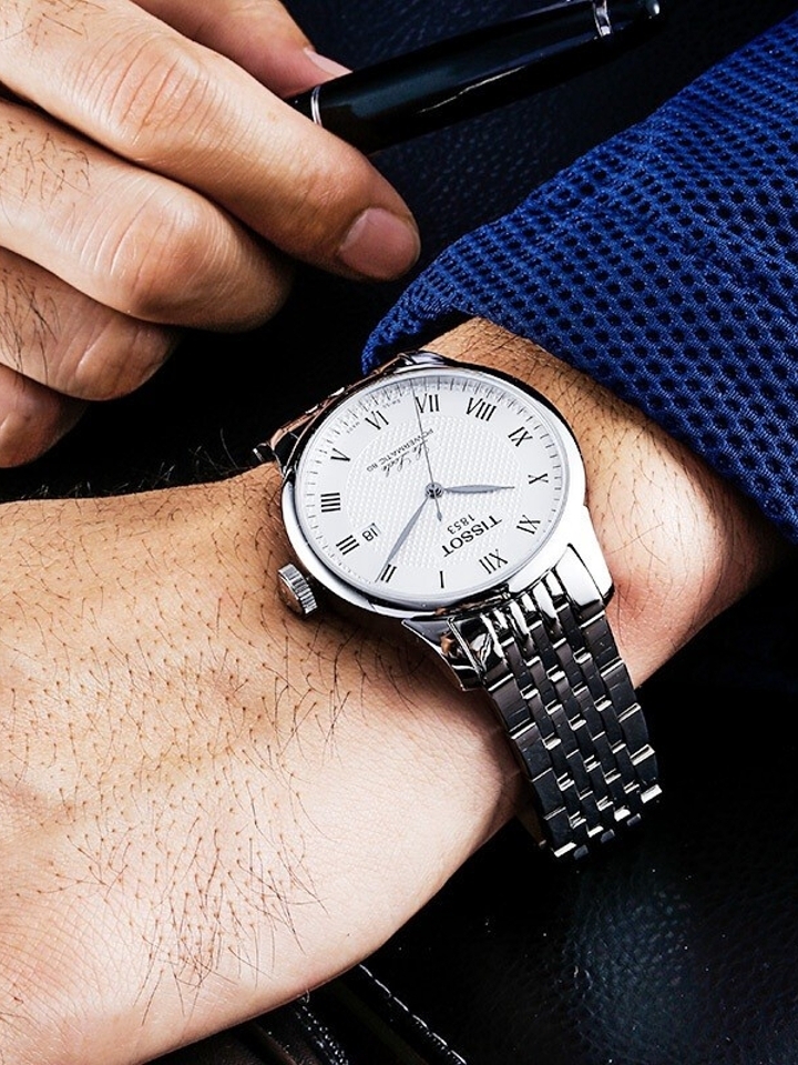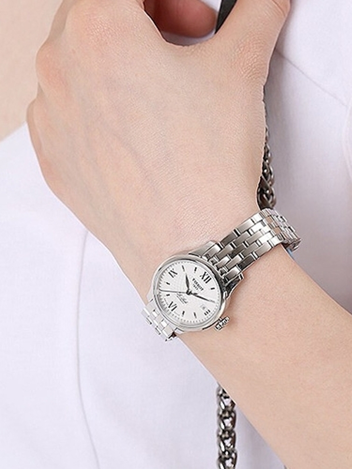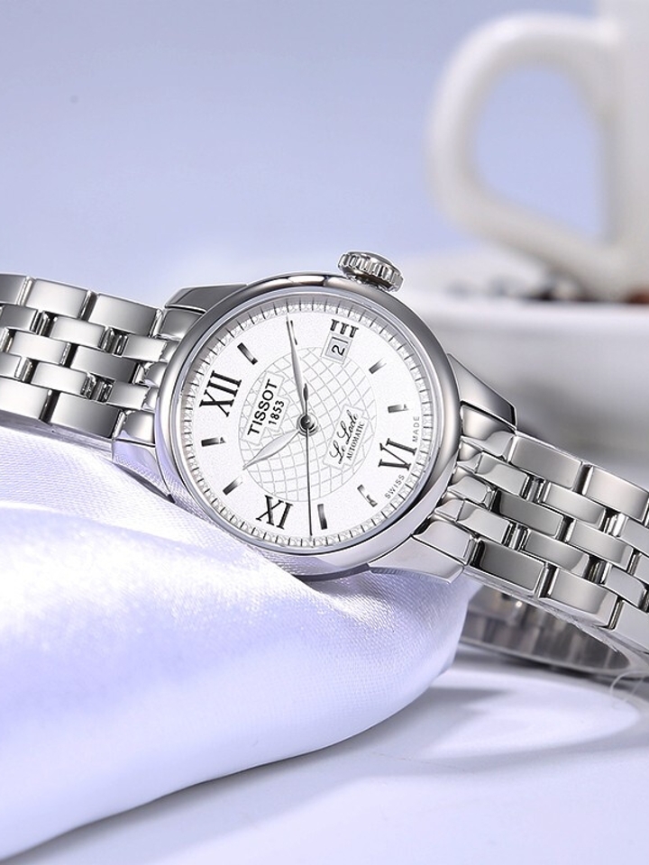 由Tissot/天梭出品,此款机械表的镜面选用人工合成蓝宝石表镜制作,耐磨防划。白色的简洁大表盘搭配罗马数字刻度,经典时尚。蝴蝶双按扣设计取戴方便,棕色真皮皮带复古简约,佩戴舒适