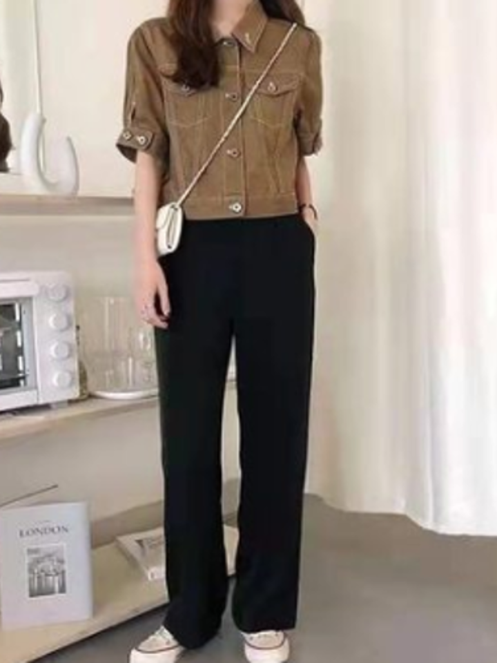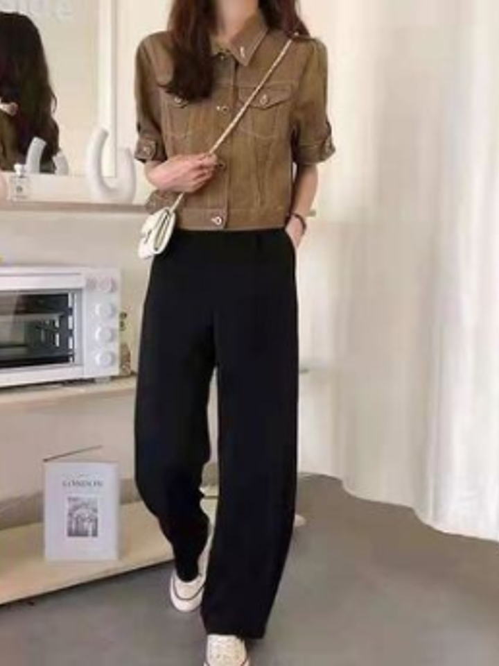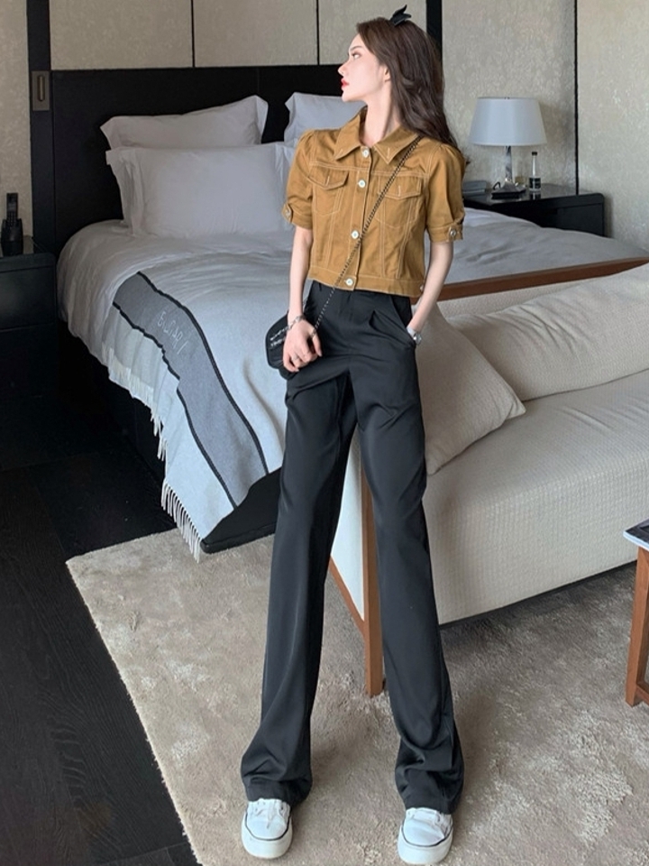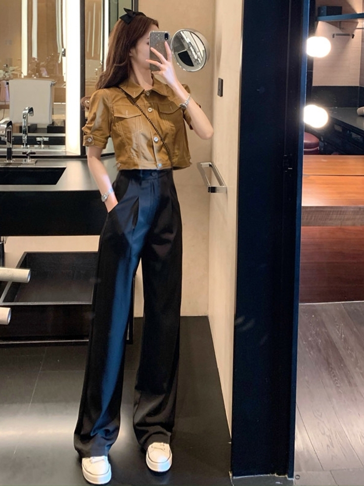 顺畅利落的阔腿裤线条,帮忙遮掩腿部多余脂肪,纤细长腿呼之欲出。系上一条宽边腰带,街头潮流达人形象让人过目不忘。营造出强烈的视觉感,尽显摩登大气。