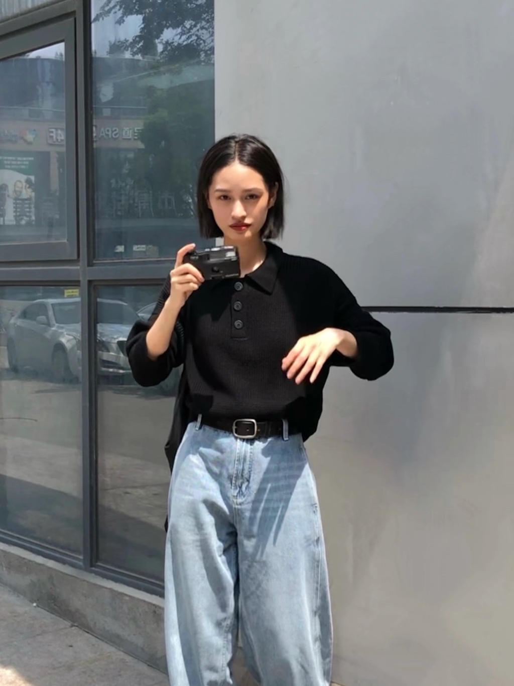 高腰设计,拉长身材比例。高腰牛仔裤,显瘦显腿长。直筒裤型,修饰腿部线条。