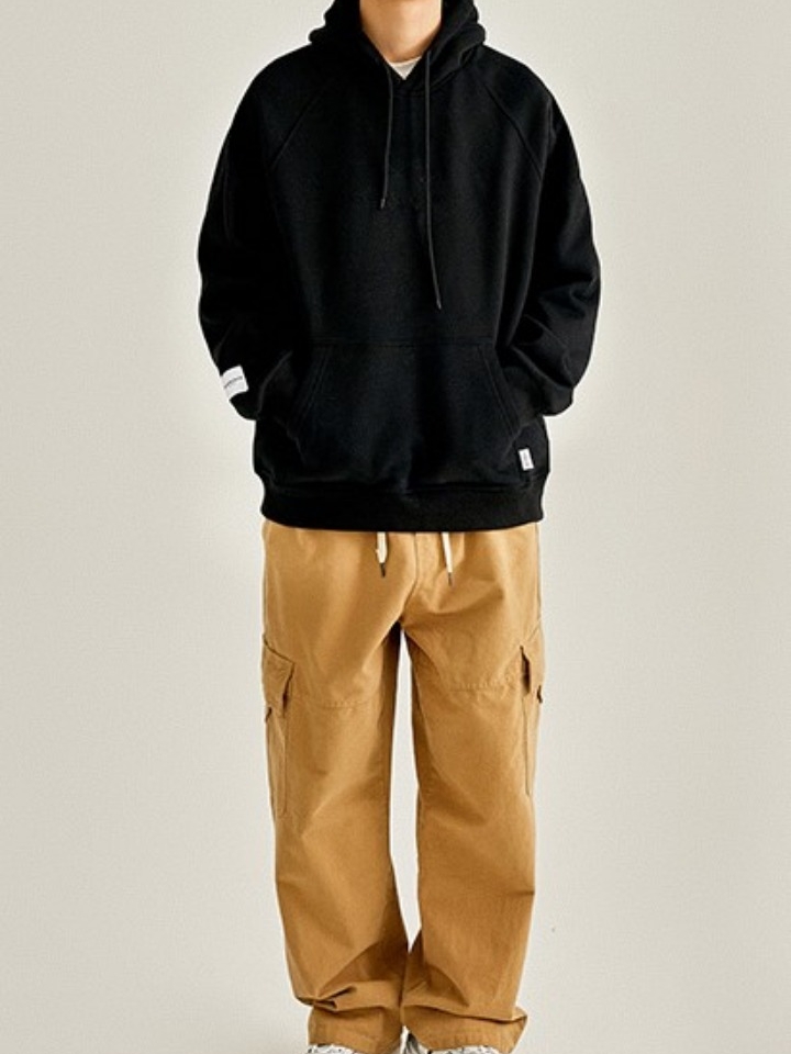 黑色基本款夹克,字母LOGO连帽卫衣就能改变整体气质,中和了沉闷,增添了活力。搭配纯色同色系连帽拉链卫衣,依然不失硬朗气质,并且增加了青春气息。