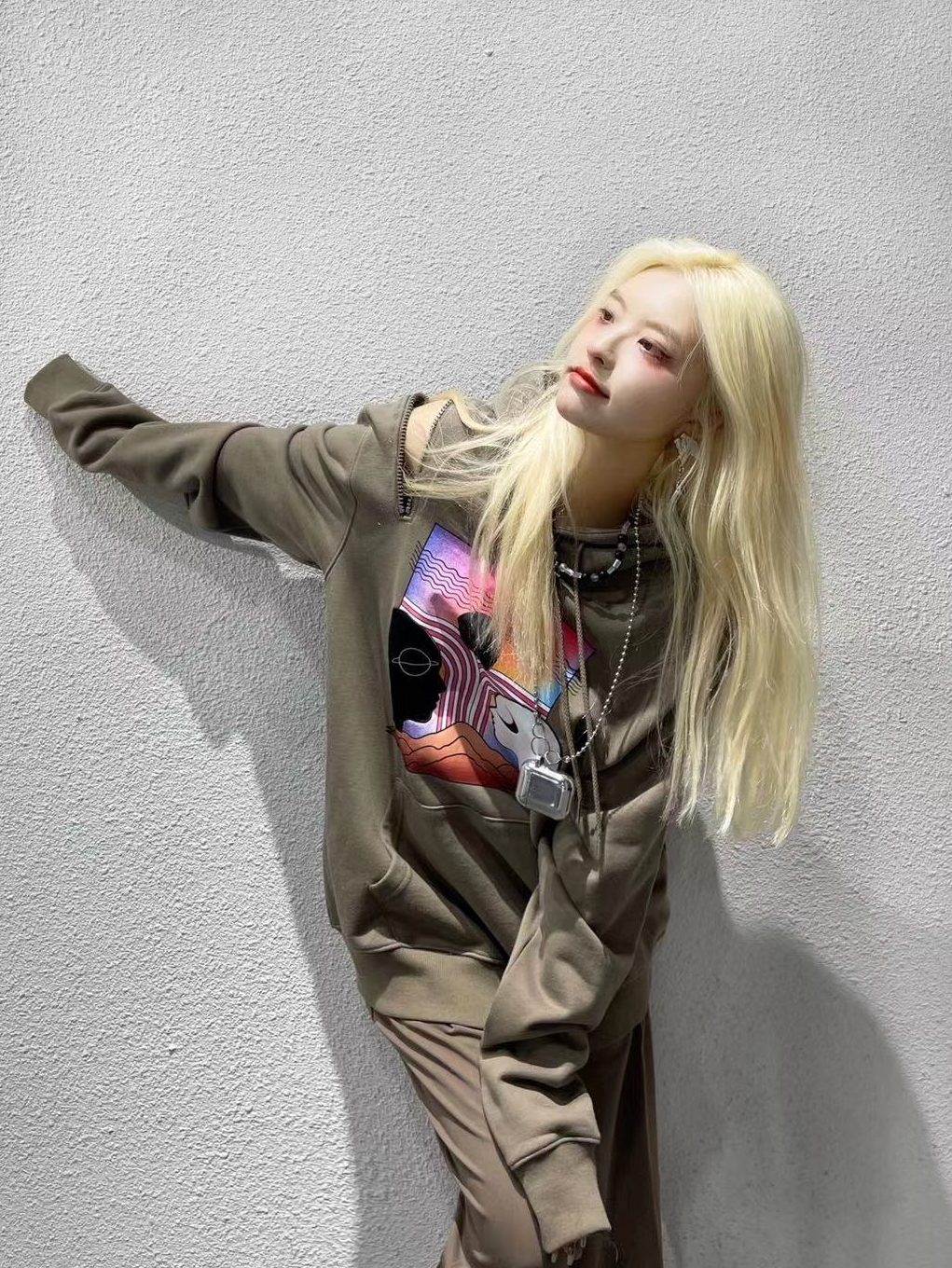 连帽设计的卫衣,总是让人穿出青春感和时尚感。宽松的廓形,上身就自带气场。面前的黑白人物照片,充满艺术感和潮流街头感,个性吸睛。