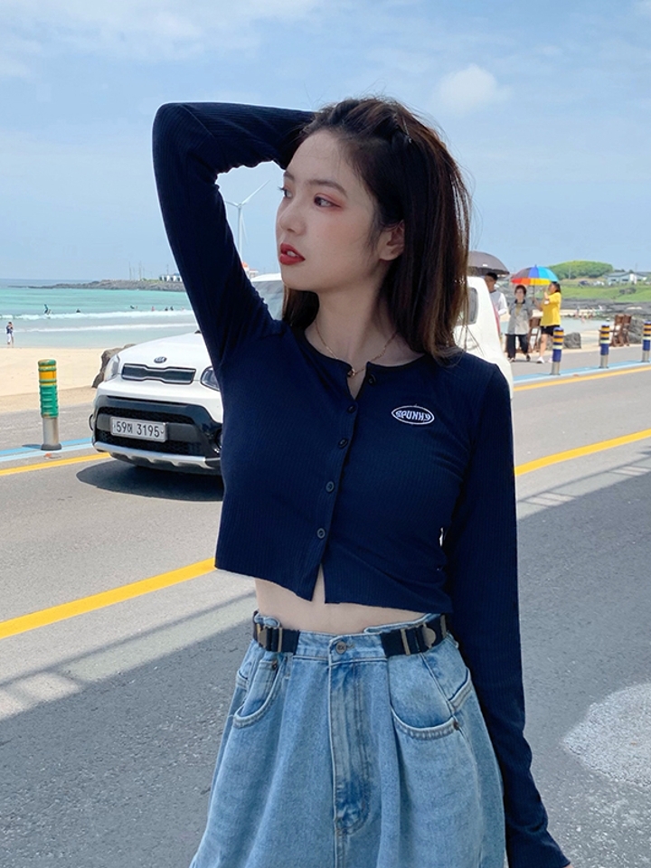 短款利落的针织开衫,搭配高腰阔腿裤,尽显时尚感。
