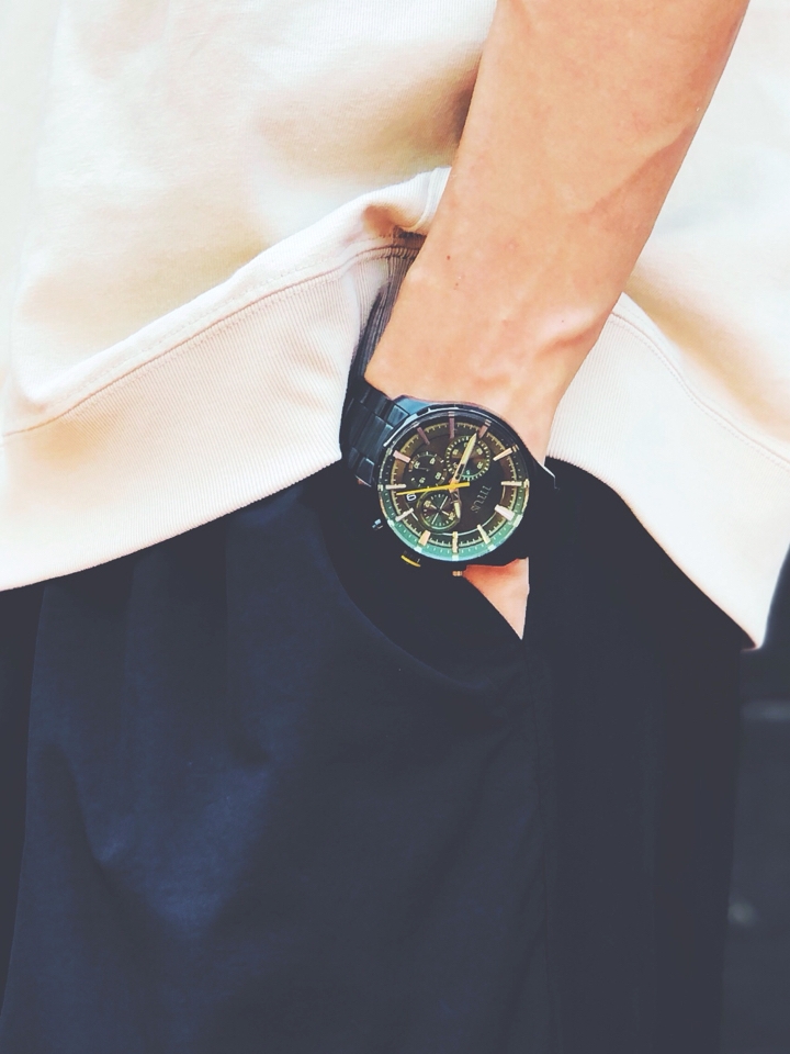 瑞士铁达时的“Saber”剑齿系列腕表,第一眼就被哑光黑和军绿色吸引,颜色搭配太好看了。
