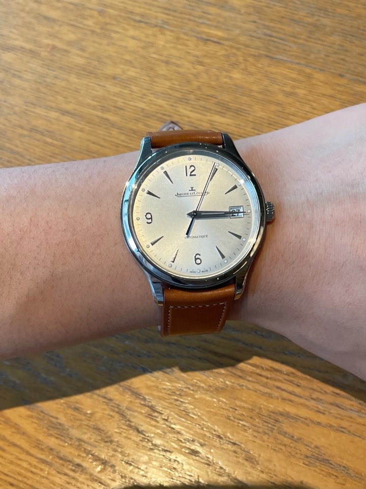 老公生日马上就要到了,正在我纠结要送他什么的时候,在网上无意间就看到了积家大师系列Q4018420 的这款手表,一眼相中,果断就买了回来,到手之后他还蛮喜欢的~