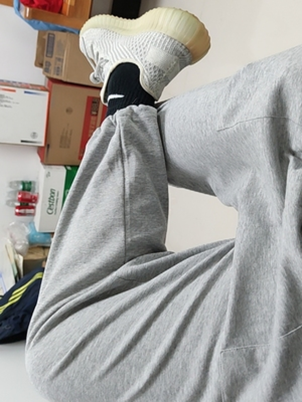 束脚卫裤采用纯棉针织面料打造,手感柔软厚实。裤腰头采用螺纹松紧带并添加抽绳设计,非常简单实用。