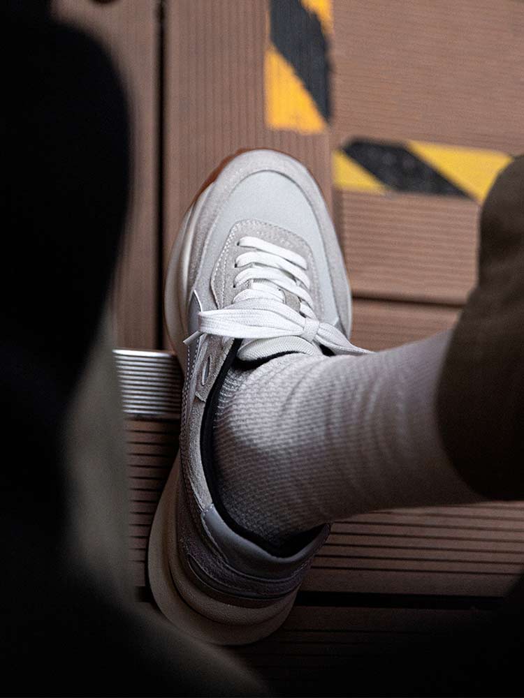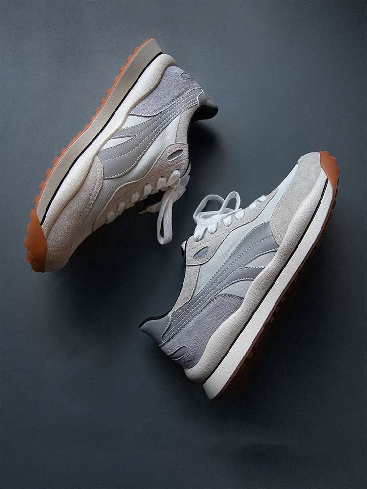这双慢跑鞋采用了头层猪皮的材质作为鞋面的设计,头层猪皮的材质具有良好的透气性与极佳的弹性,且结实耐磨增强穿着的寿命。触感柔软细腻,带来舒适的穿着体验。橡胶大底的材质,具有极强的抓地力性能,鞋底可随意弯折且不易断裂,防滑耐磨韧性佳。