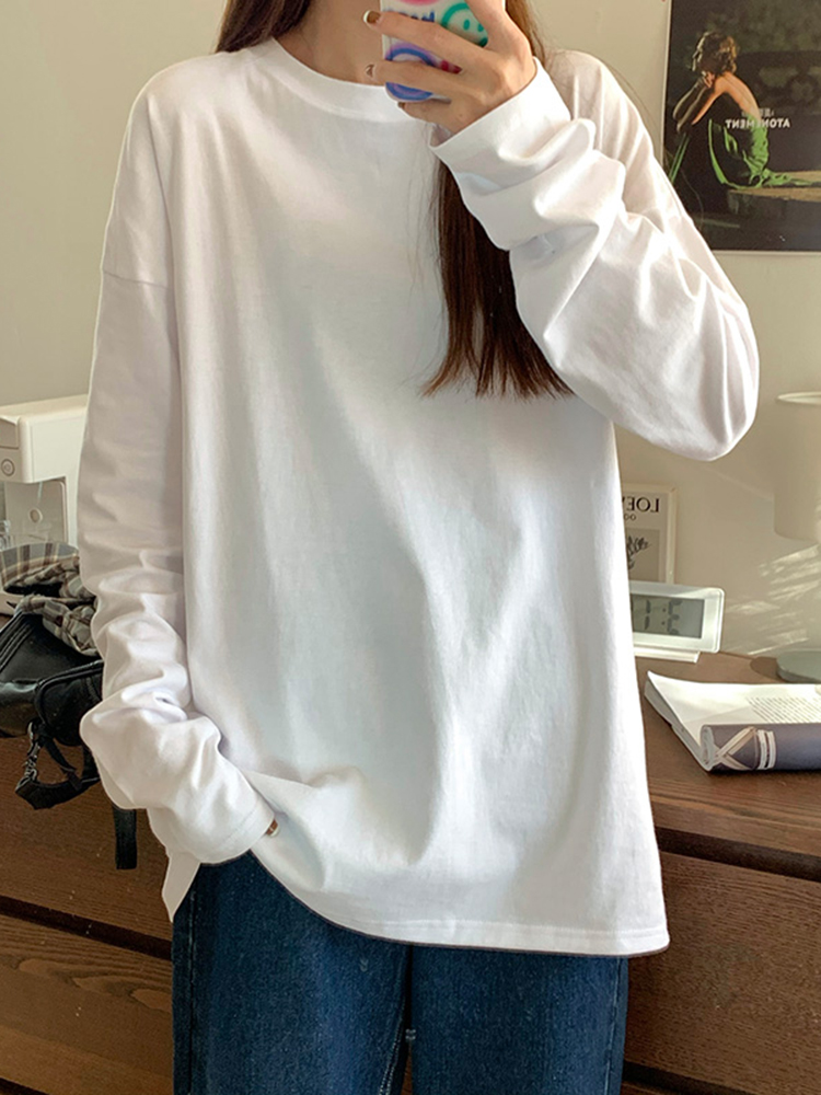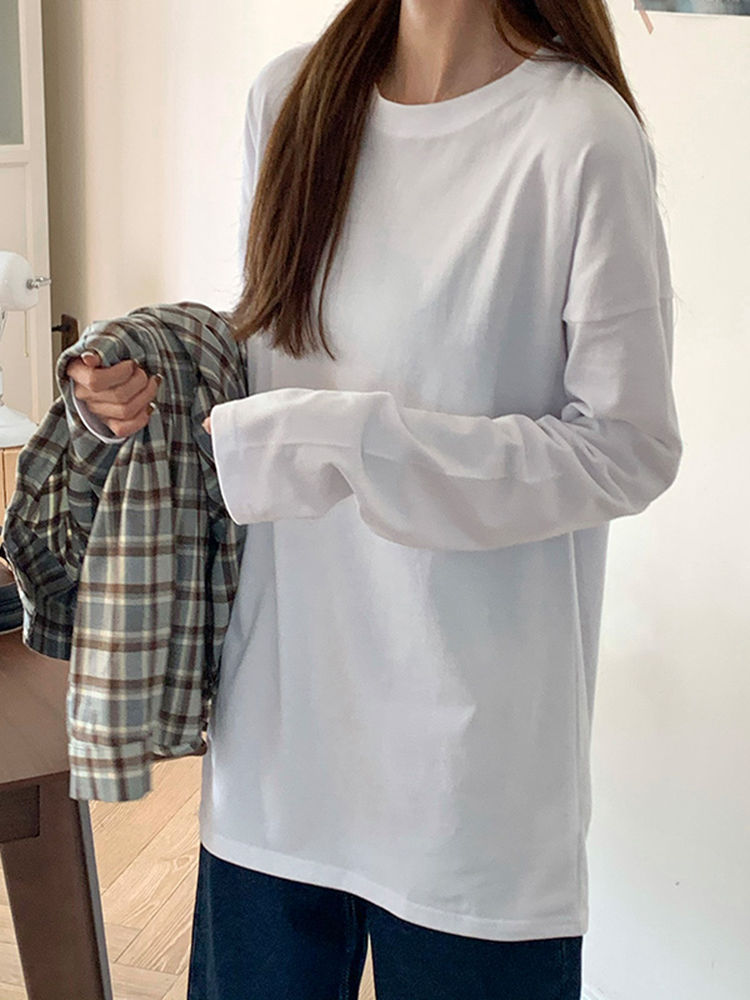 很简单的一款打底衫,经典的圆领,任何脸型都可以驾驭哦,很休闲又百搭的款式,随意搭配上一条牛仔裤,休闲百搭感十足