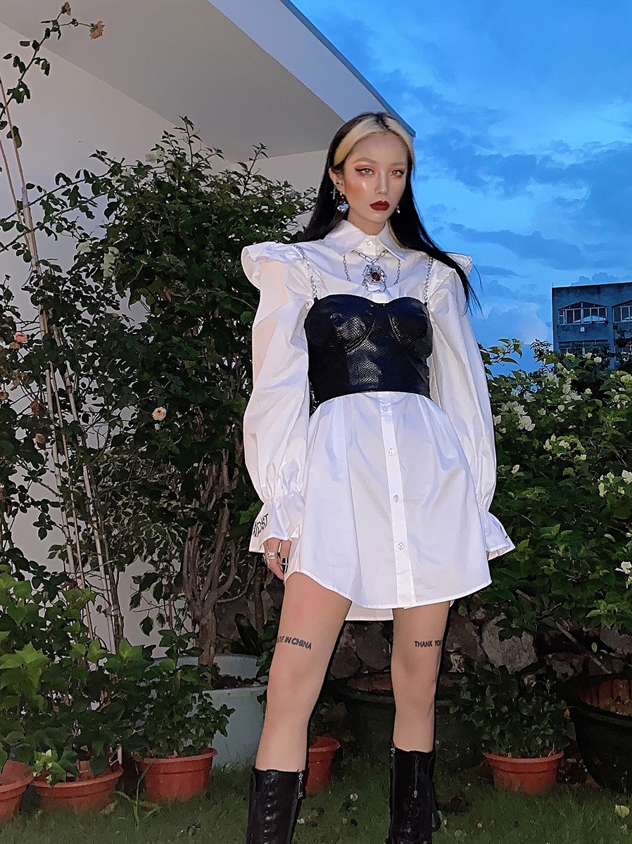衬衫裙也是潮流追随的款式,棉质面料舒适透气,修身版型开衫设计高端、翻领自信大方、袖口与腰部宽度松紧车缝个性甜美。