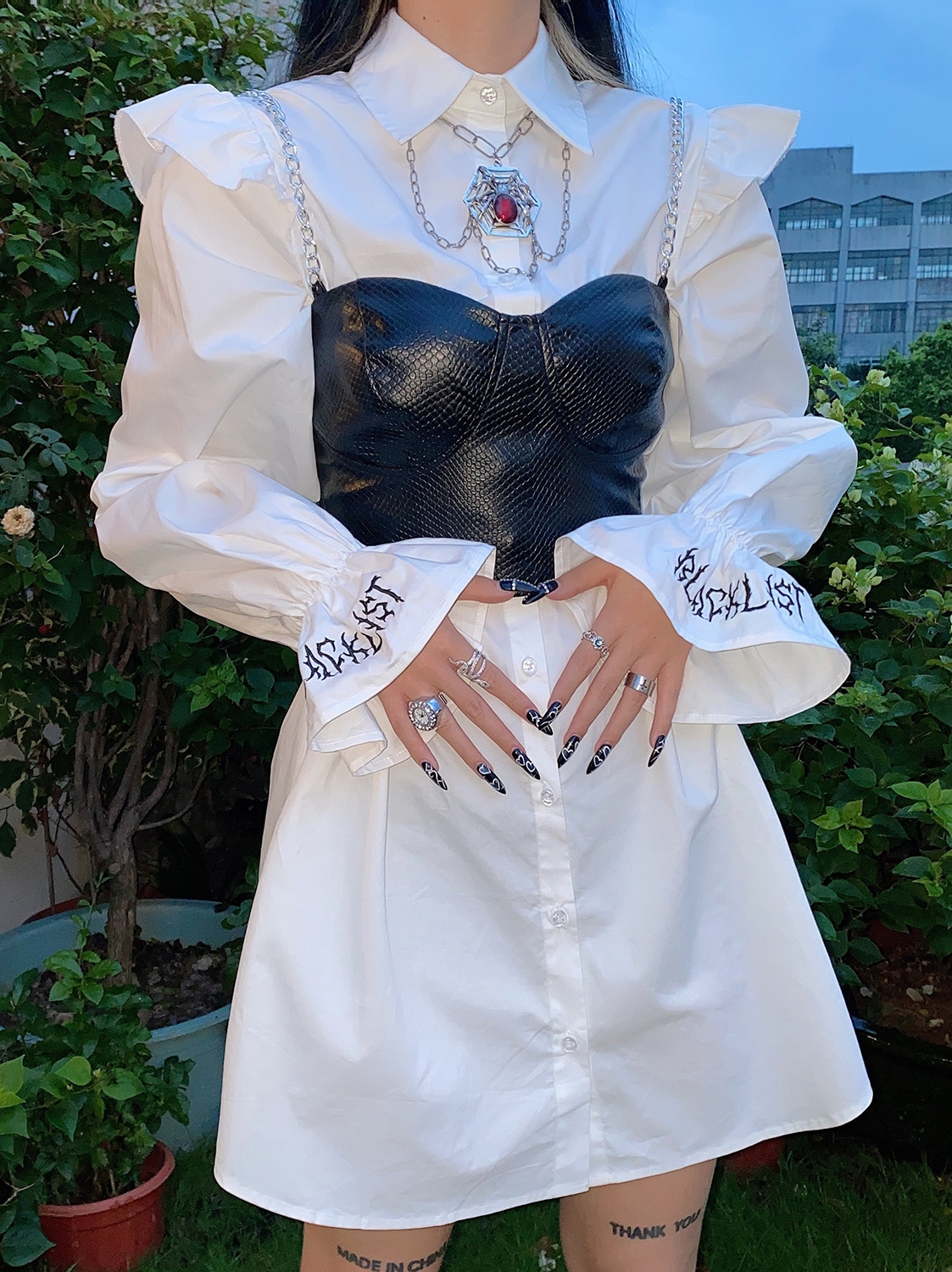 很大方的一款衬衫裙,清新的白色,虽然不是太耐脏,但衬托肤色姣好。小翻领修饰脸庞,单排纽扣,穿脱非常方便。