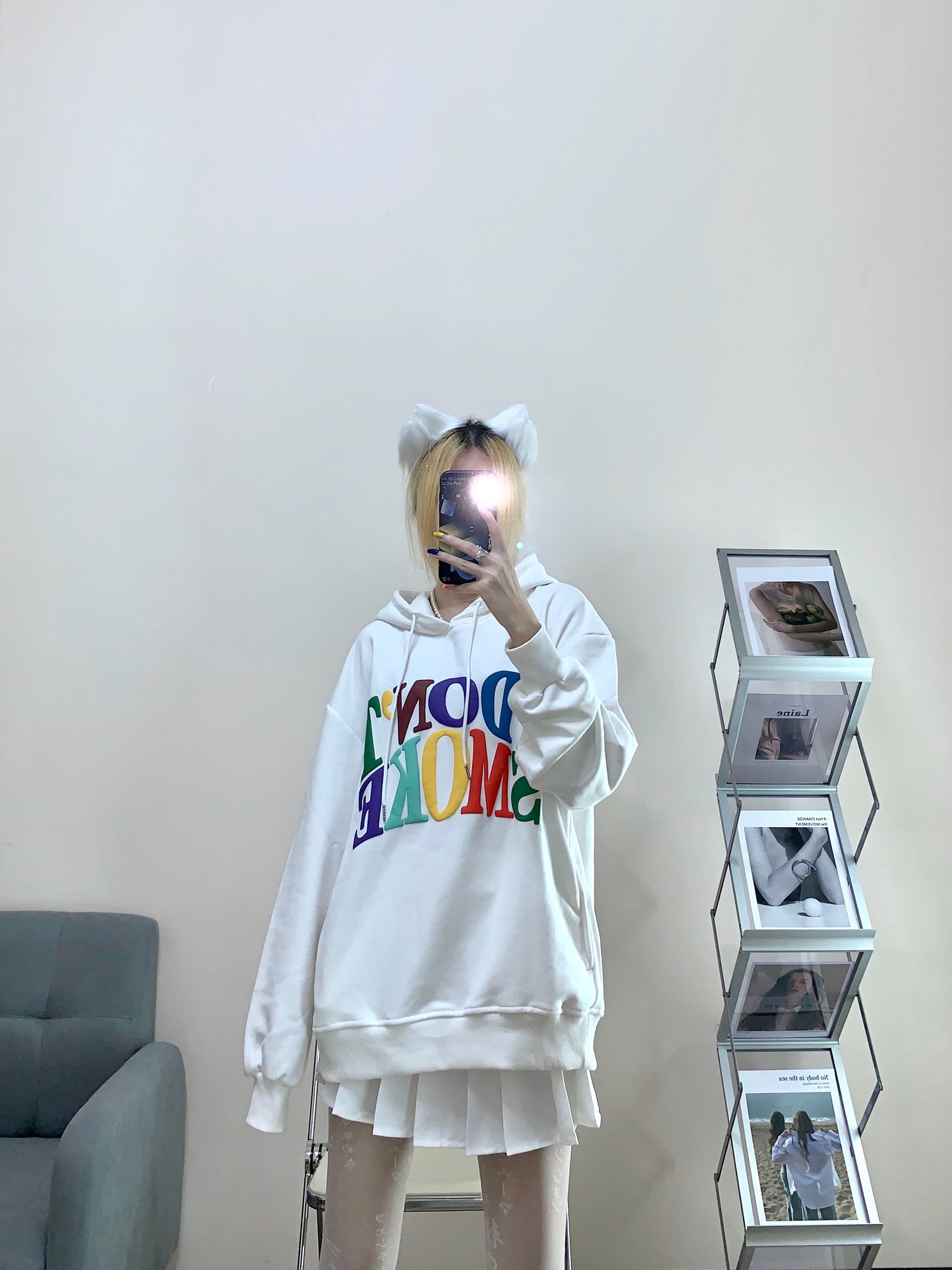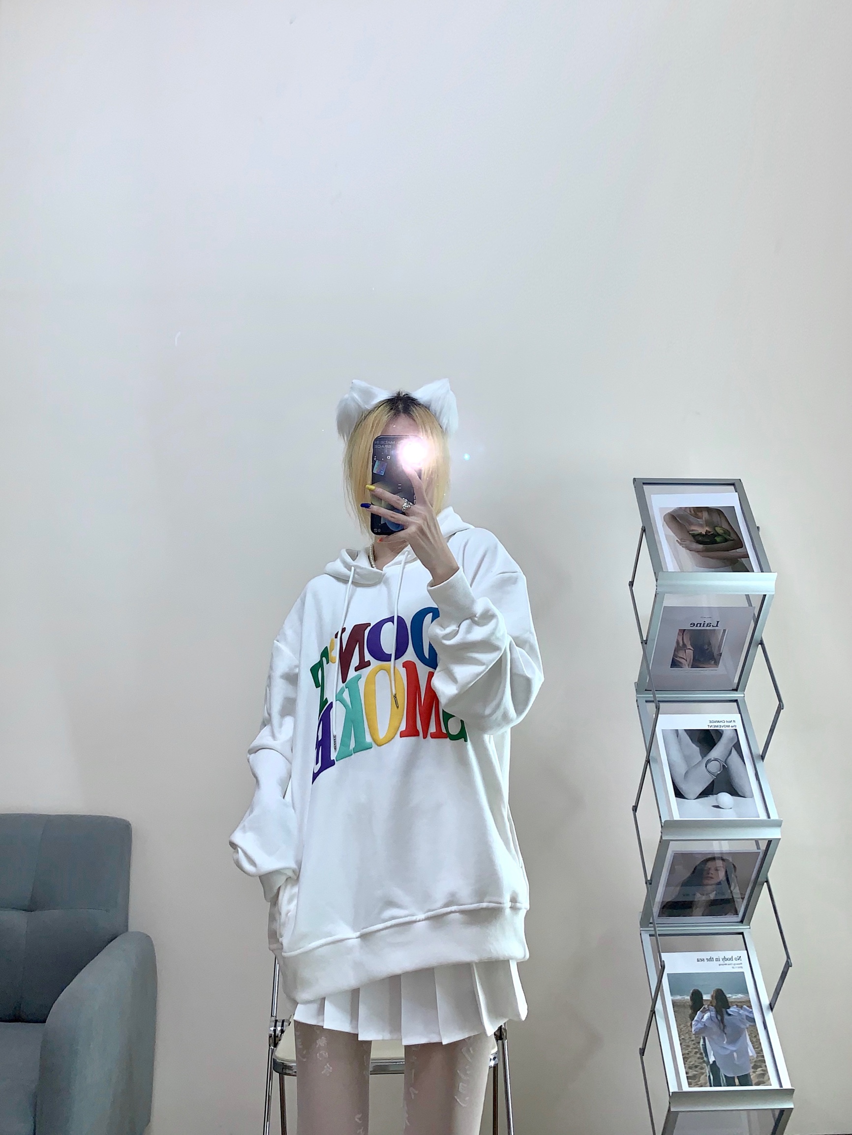 全棉的发泡印花卫衣,款式比较宽松,不挑身材。细节处也不马虎,舒适圆领做工细腻,使颈部可以无拘无束活动,百搭的款型,随意搭配都能彰显气质!