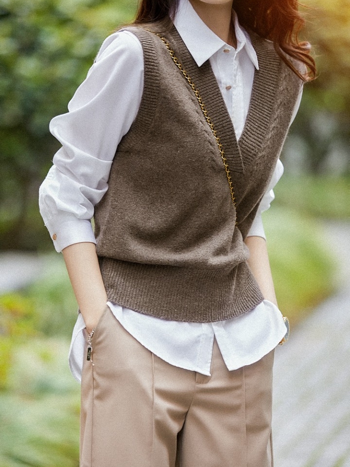 这款面料采用温和细腻的羊毛面料打造,上身后很舒适亲肤,秋冬季节穿着温暖舒适,直接单穿就很有欧腔调哦。可以选择一条白色的紧身裤,白色的裤身与衣身上的白色相呼应,又不会显得穿搭颜色的杂乱。为鞋子的话也选择白色的,带出干净的气息。最后,拎上包包即可出门。