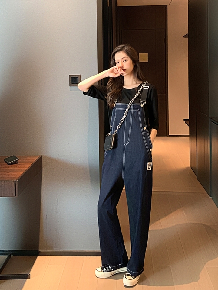 背带裤向来是减龄的必备单品,时尚中性的裤型,背带可调节,适合各种身材的菇凉。棉质的牛仔面料,上身柔软舒适。中裤的长度,两侧的口袋美观又实用。简单的搭配T恤就很好看