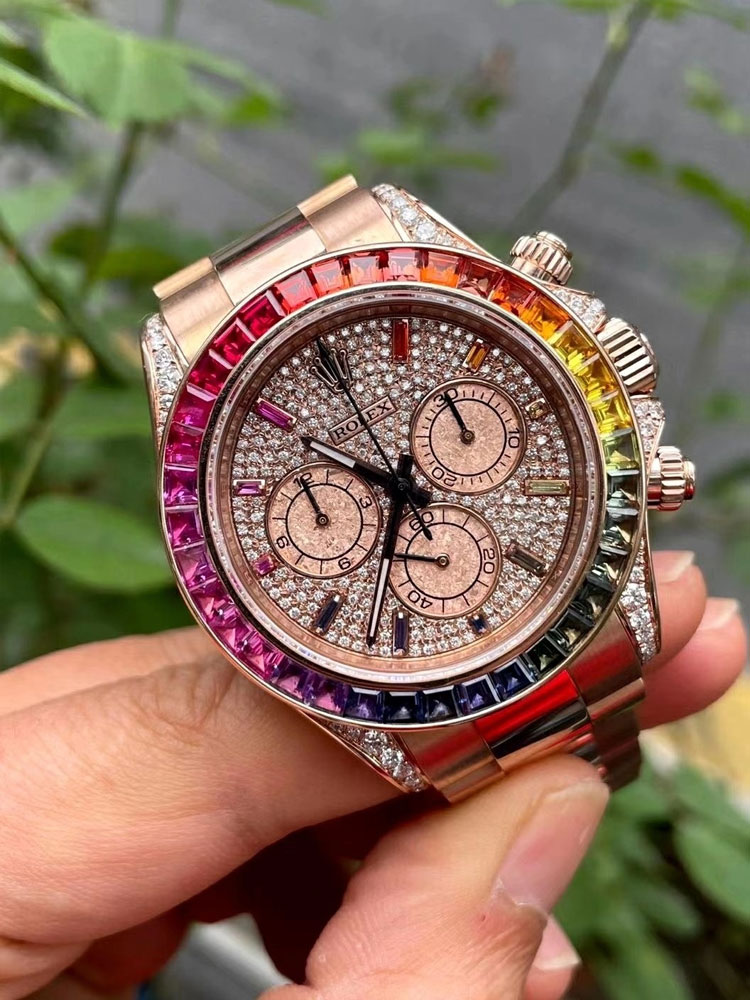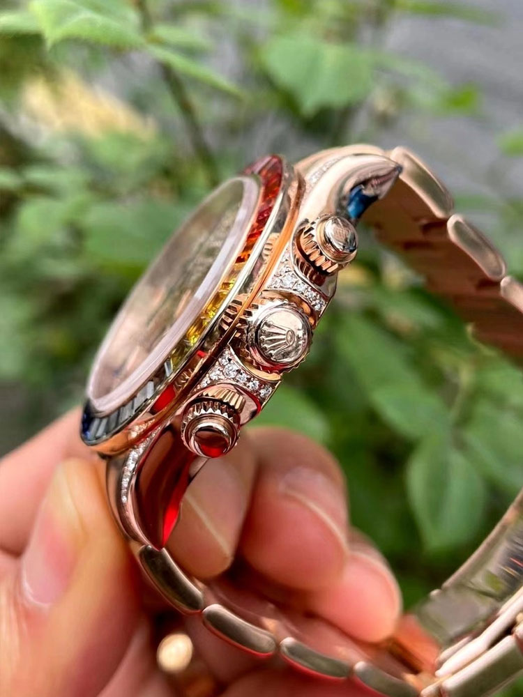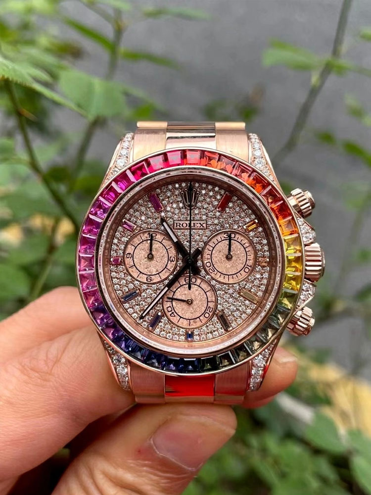 劳力士这款彩虹玫瑰金的限量彩虹机械表,颜值也太少女了吧。采用缤纷的彩虹色调搭配,完美地诠释了复古怀旧风格,尽显雅致轻奢魅力。