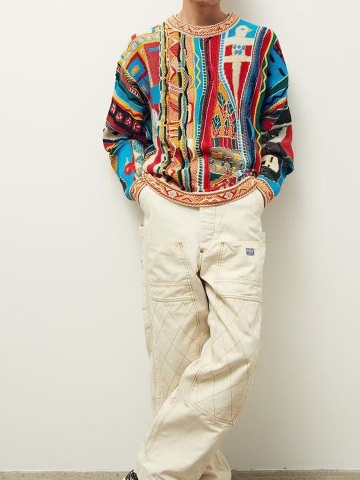 用色彩点亮单调乏味的冬日,不同的几何形拼色让针织毛衣既可爱又透着复古的气息,浪漫精致且毫不粗俗,充满层次感,还带来强烈的视觉冲击力。