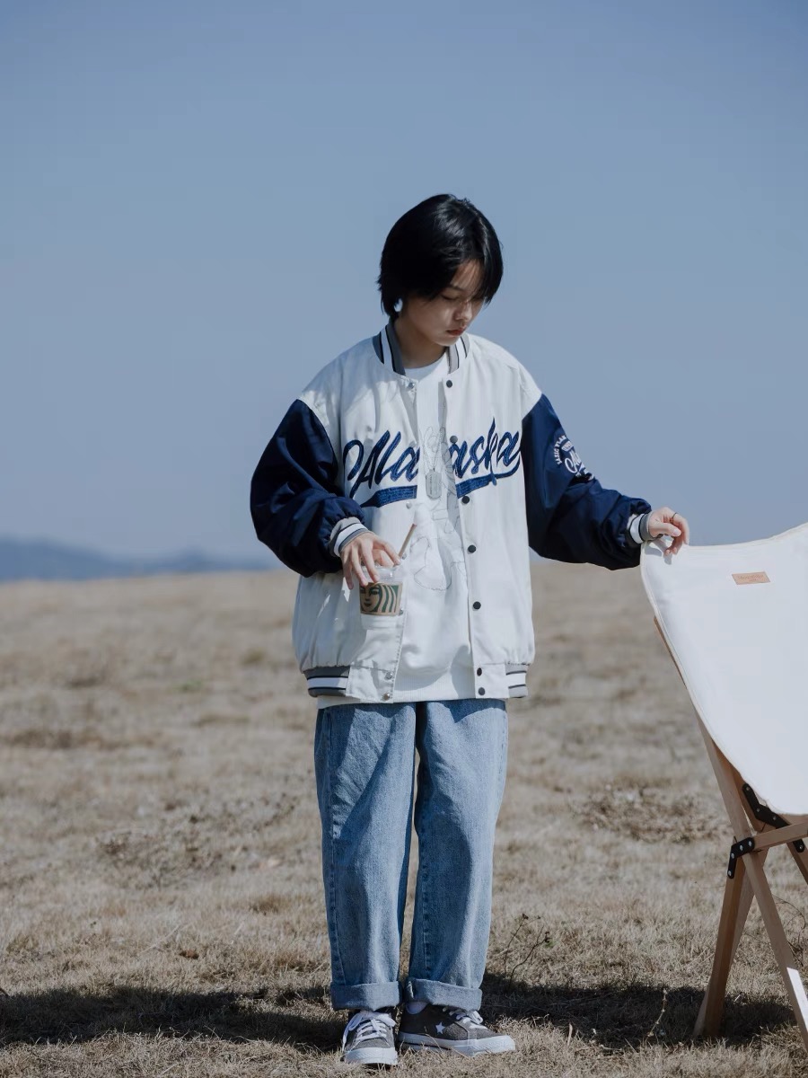 时装T台款,简单舒适的夹克棒球外套,是永不过时的经典,可拆卸运动帽,精致简单的字母手工刺绣,复古潮流的颜色,设计新颖。