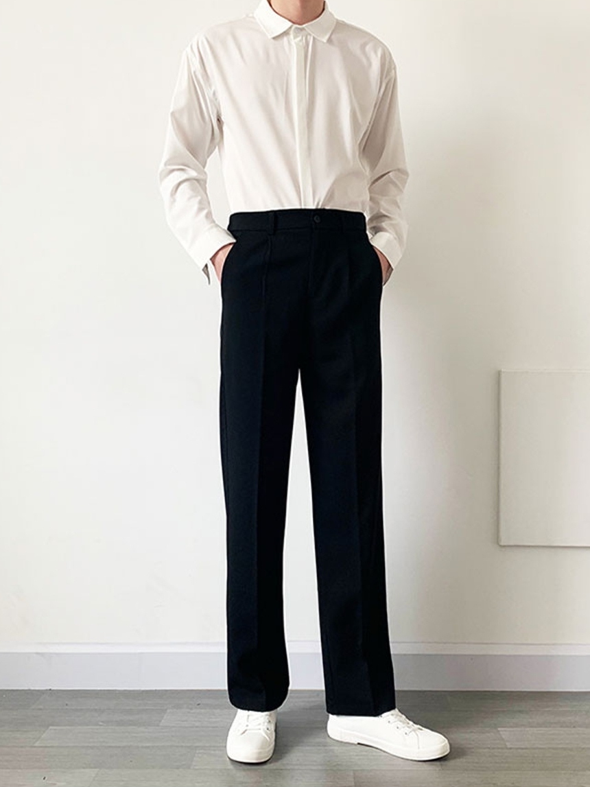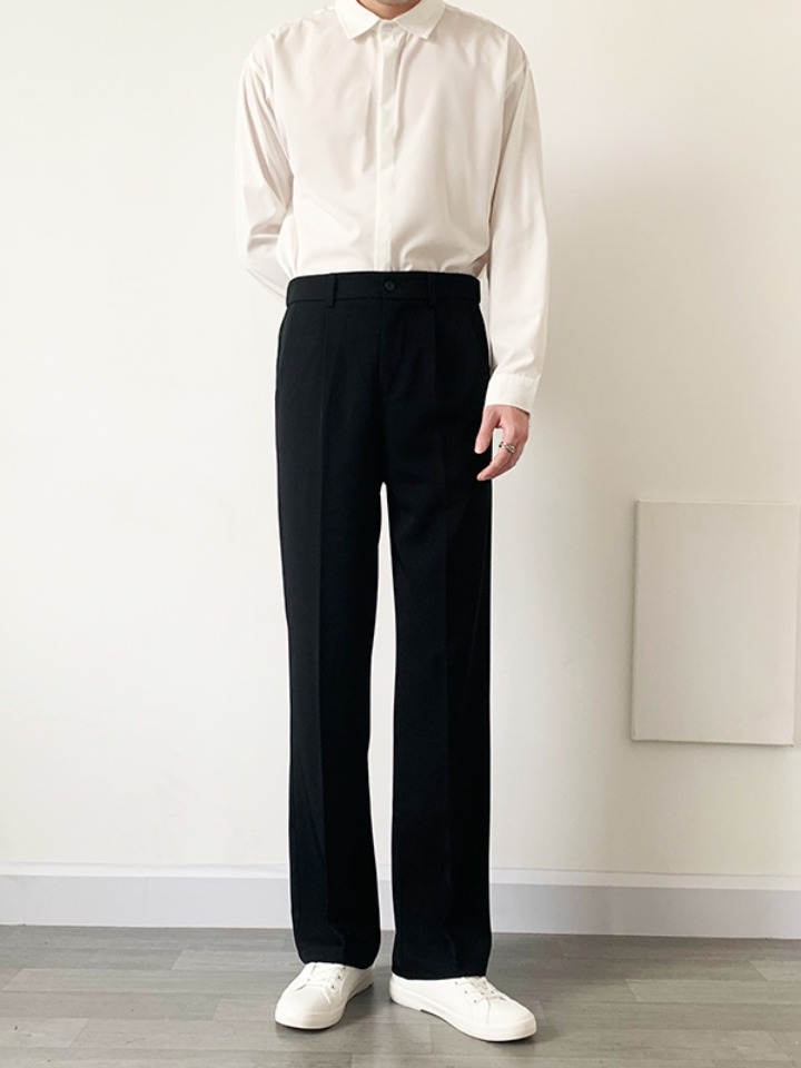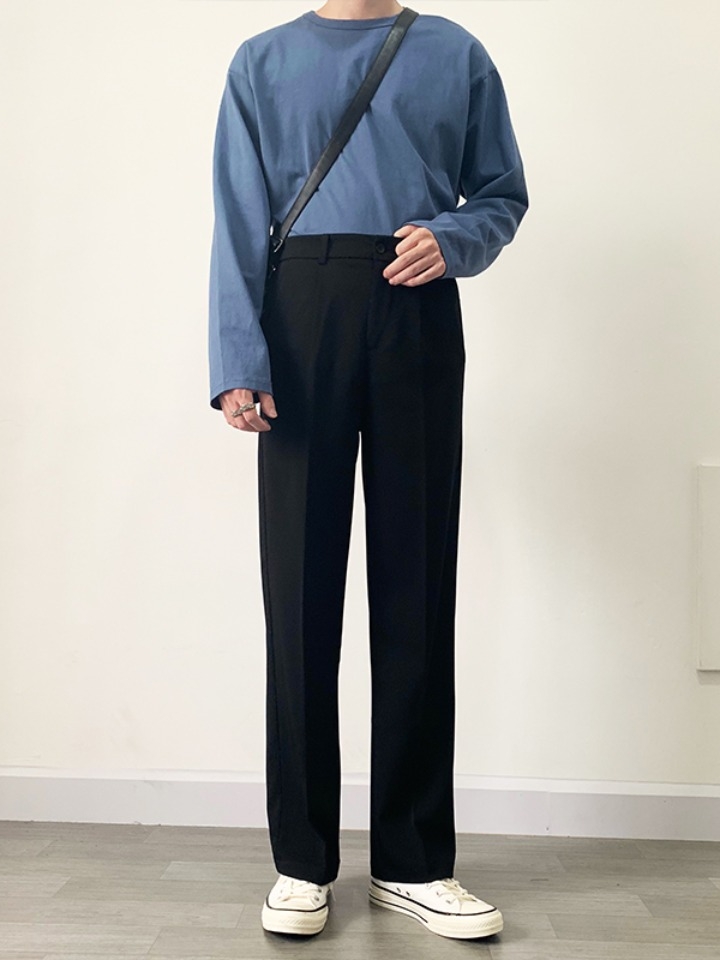 休闲西裤的搭配度很好,除了搭配稍正装一点的衬衫,配以T恤也是不错的组合。粉红色的棋盘格短袖T恤、手绳和有粉红细节低帮板鞋营造出了几分小鲜肉气质,这种色调的单品更适合白皮男生,会衬得肤色更加白皙和年轻。