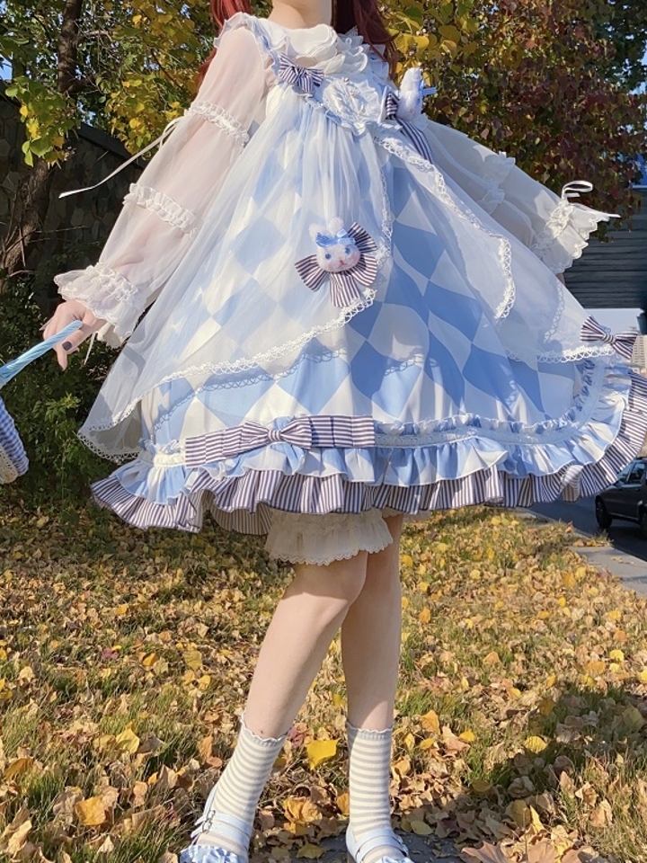 修身剪裁,版型挺括,别致前后学士领设计,气质非凡,魅力十足。金属星星领结与蕾丝花边领口,软萌淑女,甜美优雅。