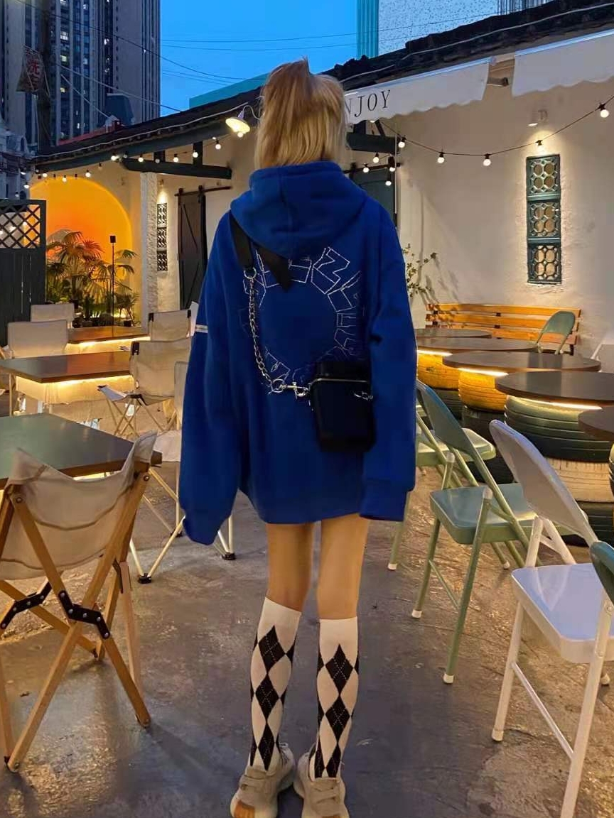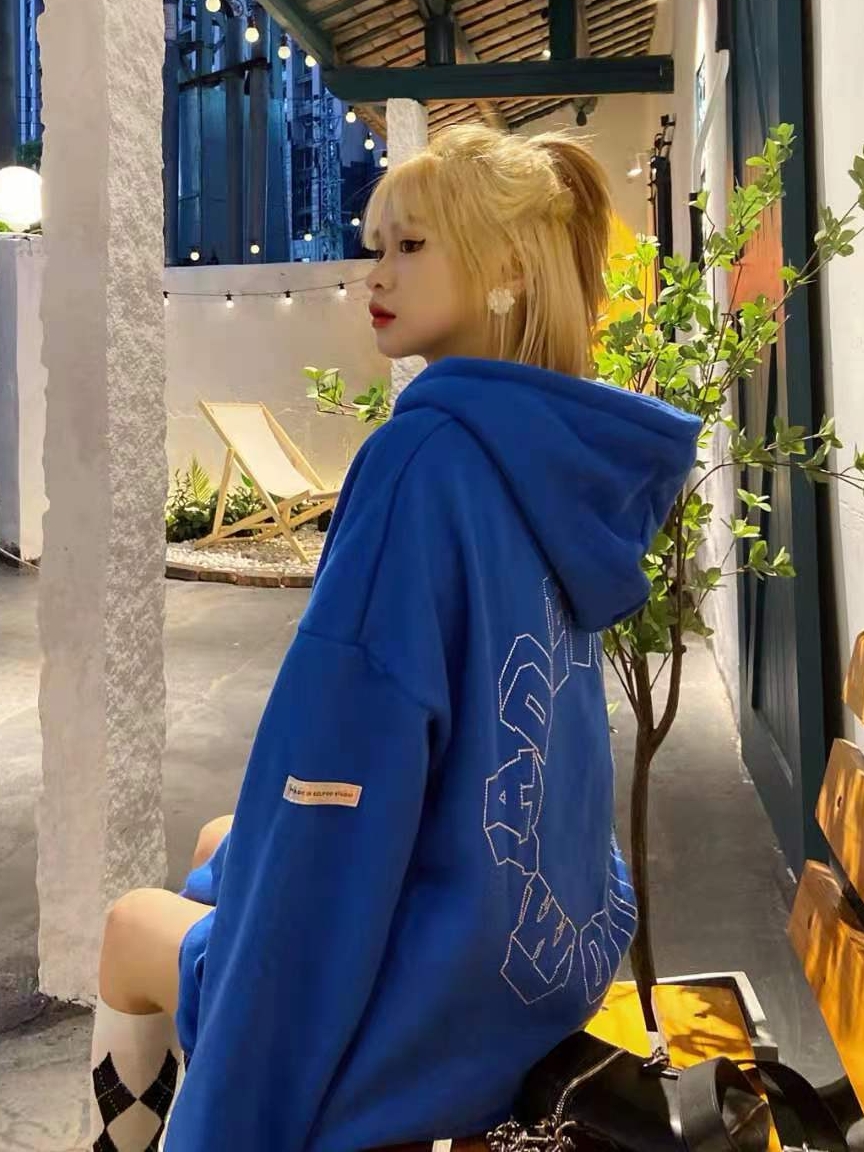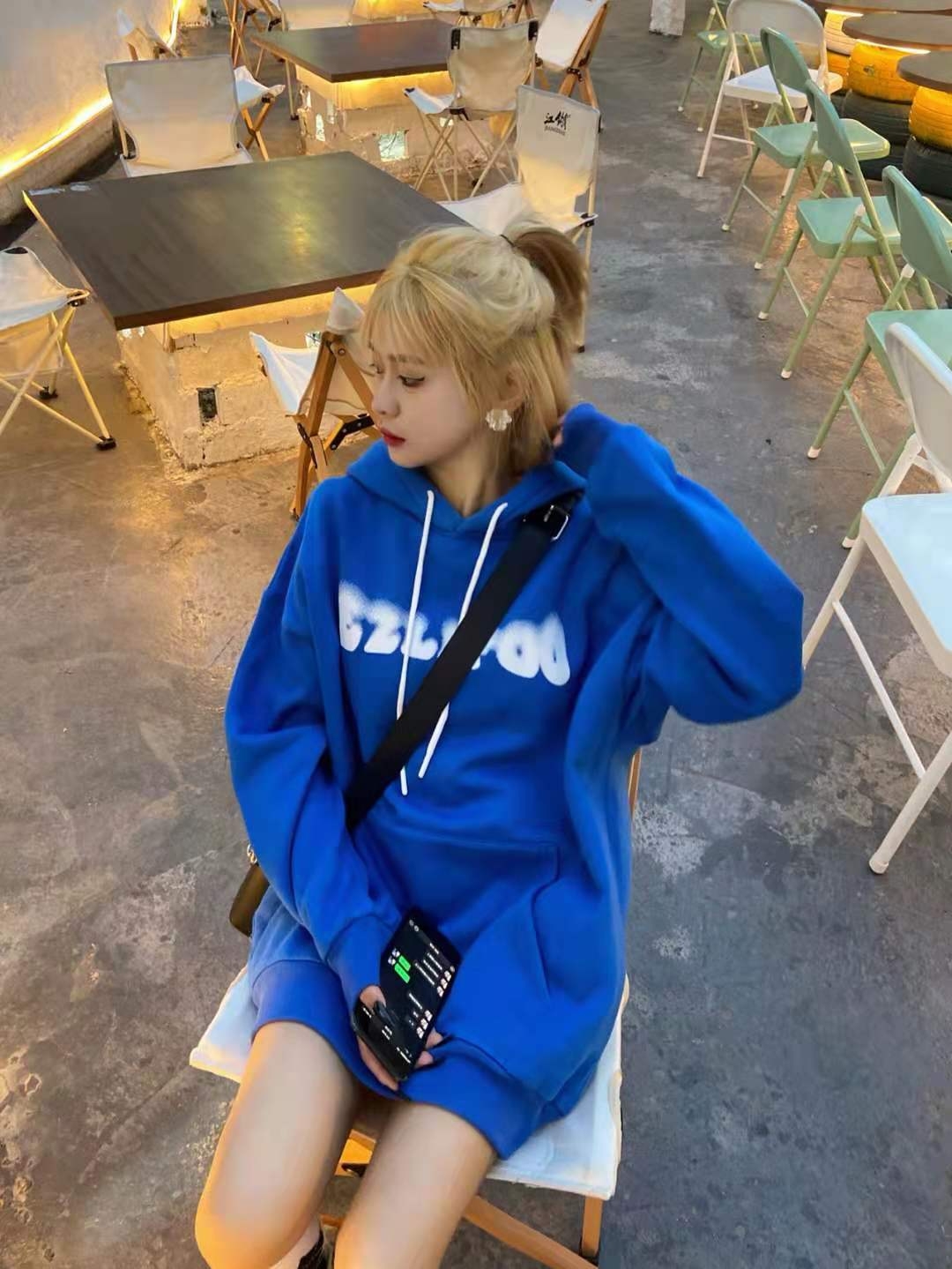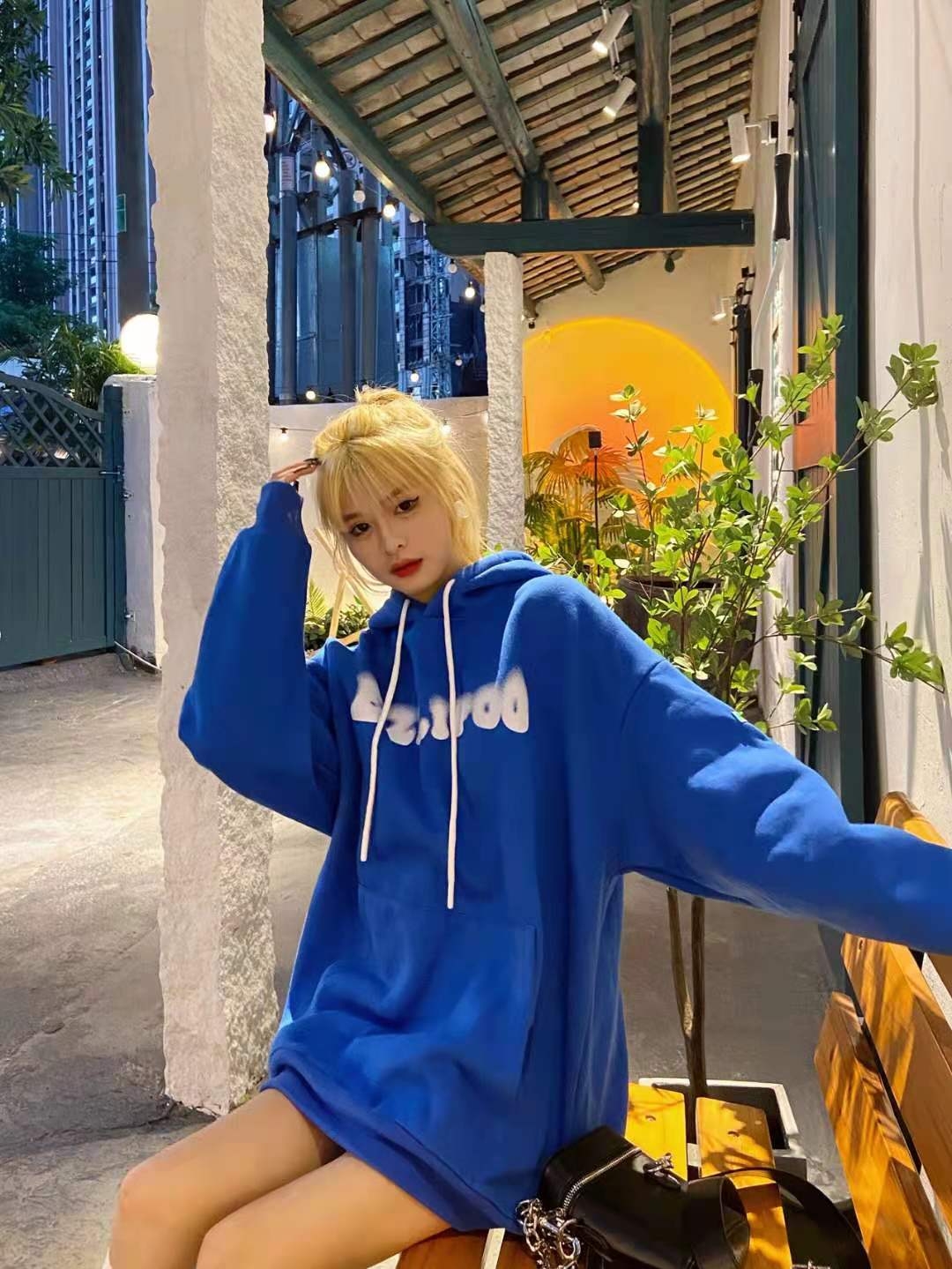 秋天,卫衣是最好的选择,百搭而且不过时,克莱因蓝的卫衣显白,而且超级好看。