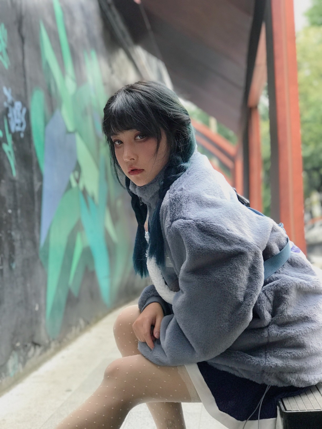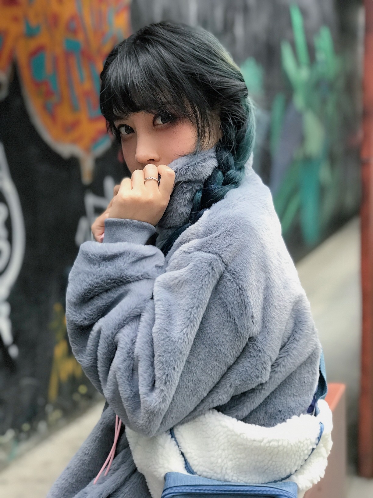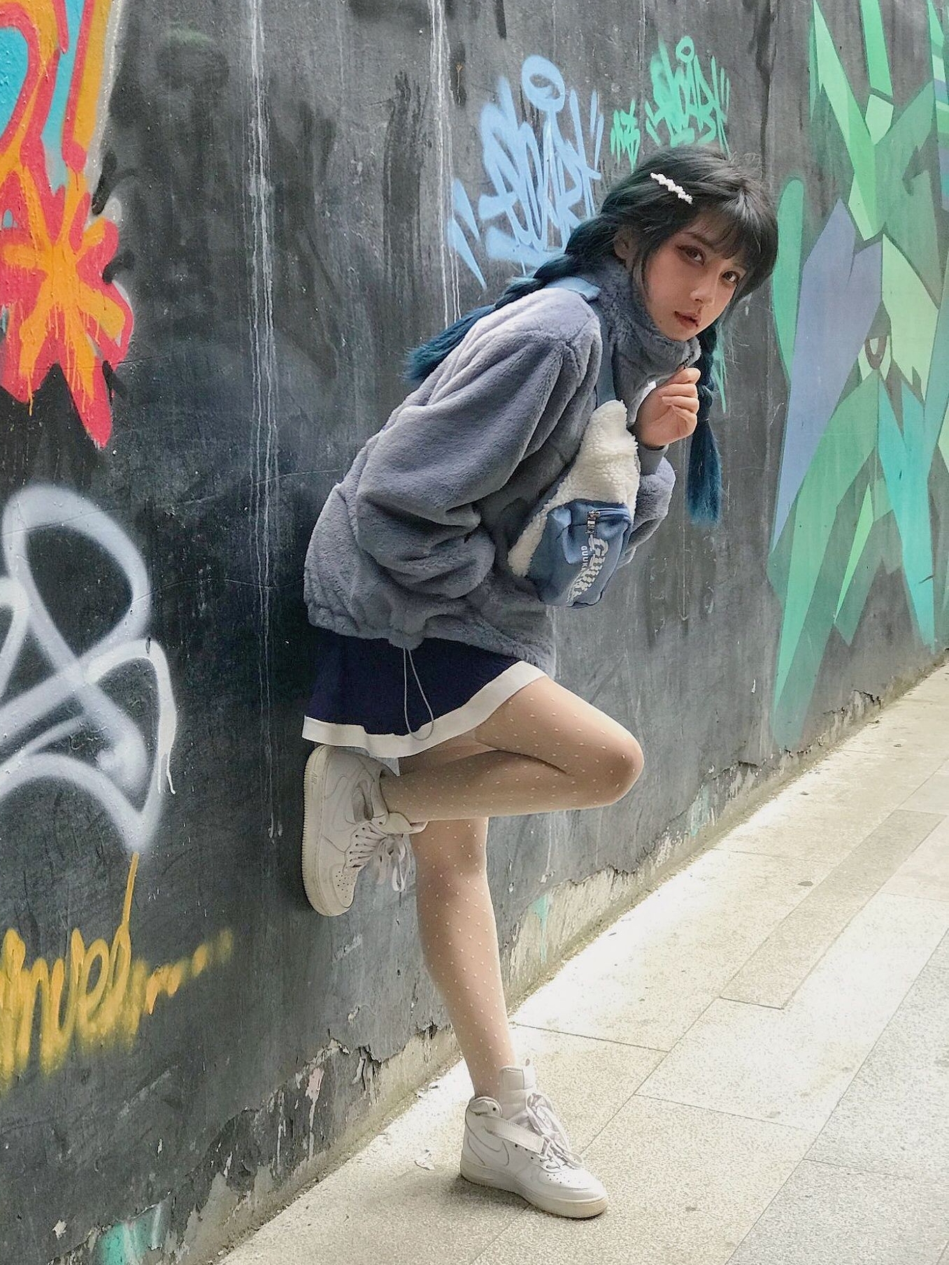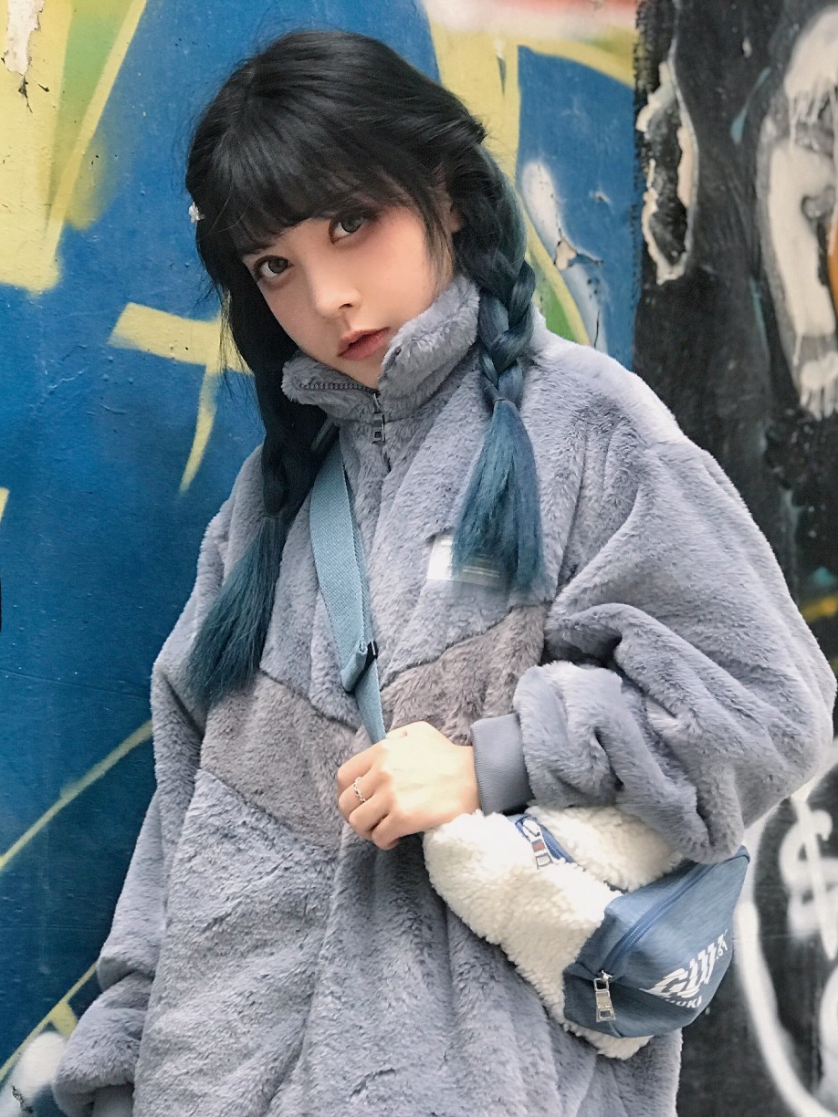 雾霾蓝的配色从17年发布的流行色开始,到19年在潮牌界的爆发,到如今一直成为了冬日流行色的新宠。像这件guuka的羊羔毛外套一样,这种朦胧色系出现在大众的视野中,给人一种纯度偏低的颜色给人一种神秘感和高级感,不同于天蓝色那样真实亮眼,一抺朦胧的灰蓝色,温柔雅致中透露着干练,加上白色的点缀,又有几分青春活力的感觉。灵活运动单品搭配,即可摇身变成文艺小青年又不失慵懒寡淡。
