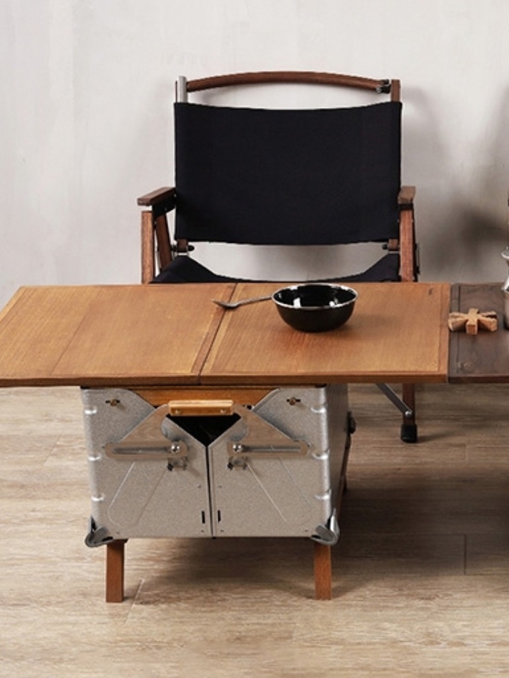 这是一款非常独特的的桌子,桌子下方设计了一个可滑动的箱子,日常使用非常方便收纳杂物。