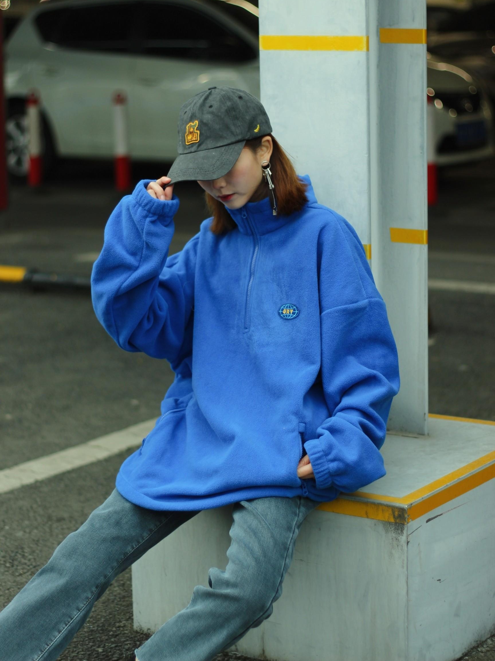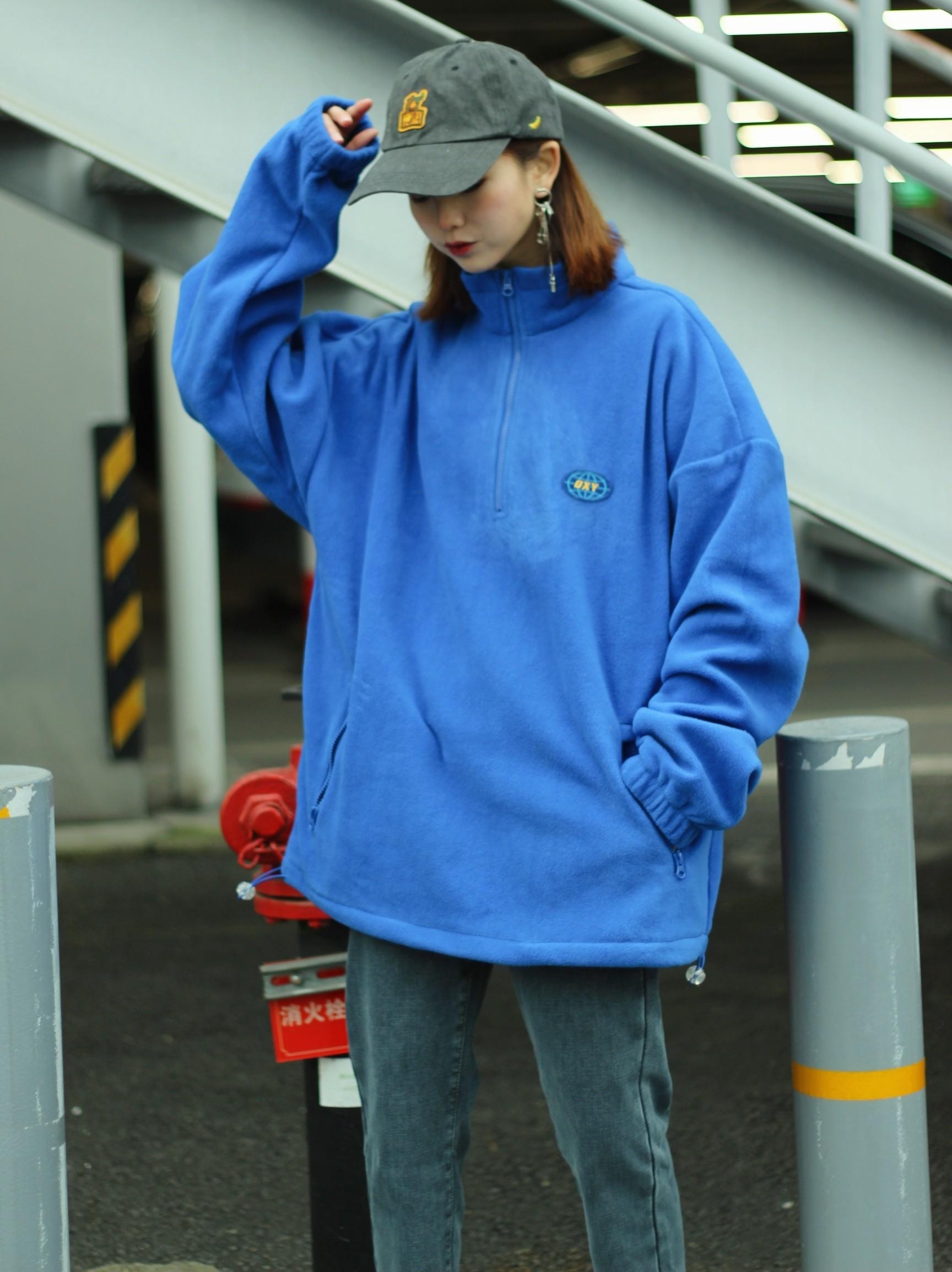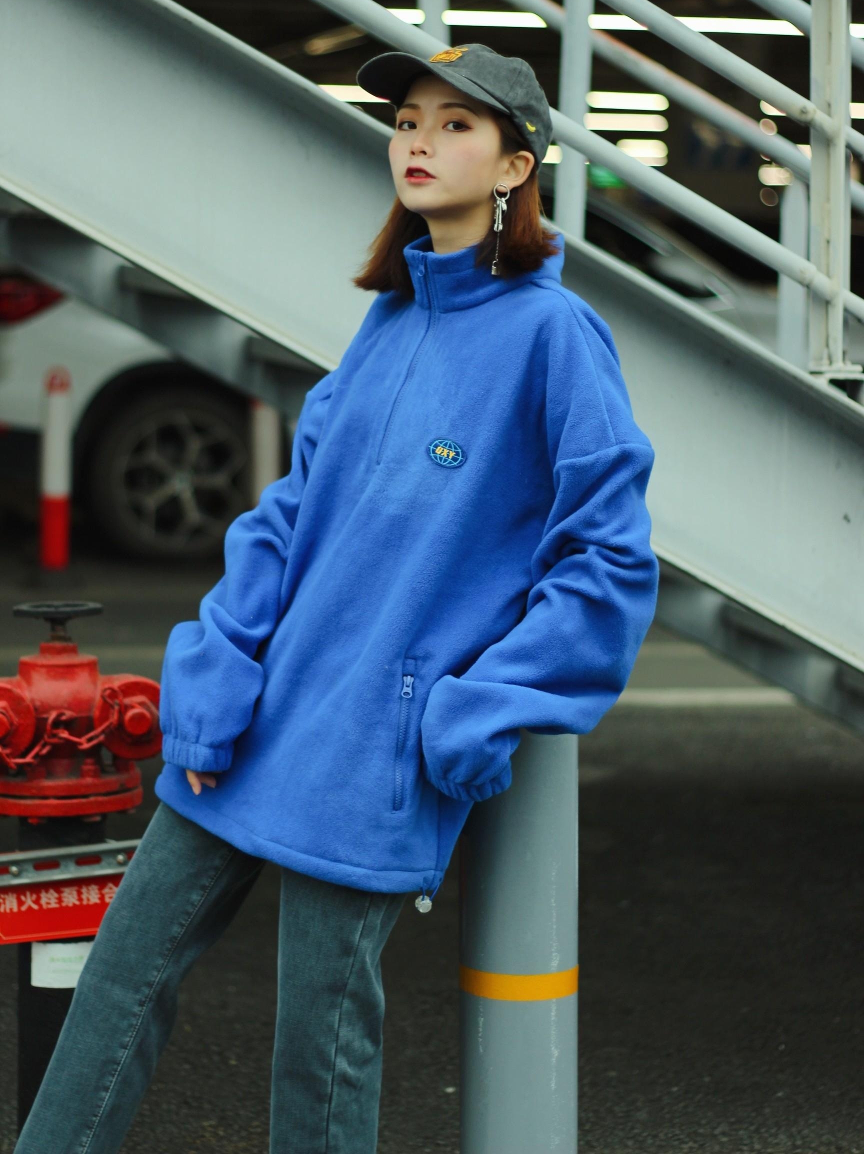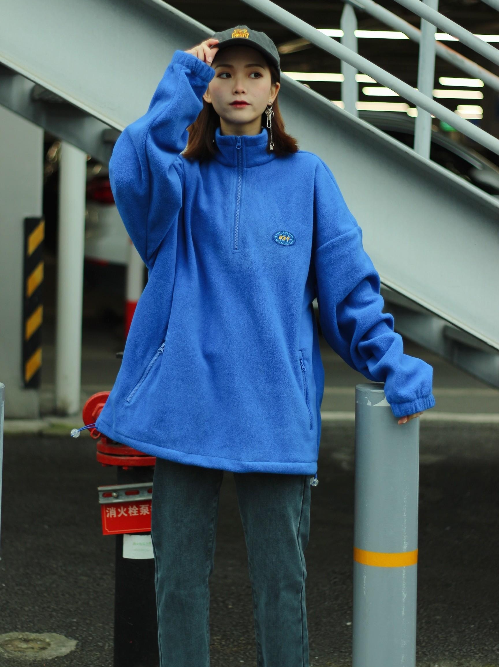 摇粒绒面料,舒适又保暖。圆领套头设计,方便穿脱。