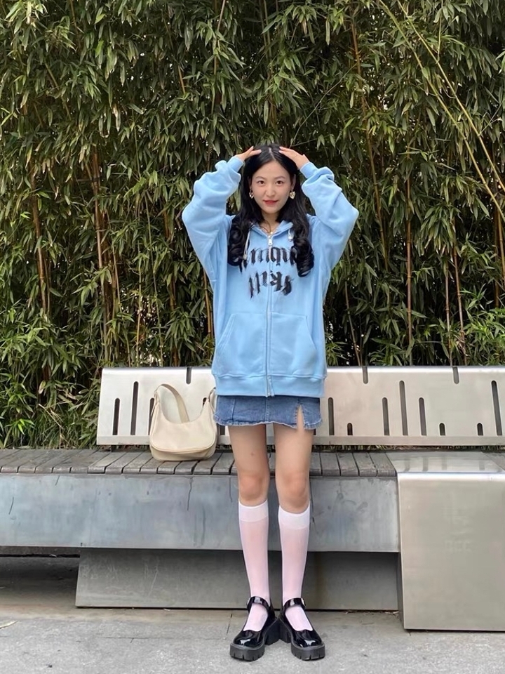 字母印花设计,很有青春活力的气息,卫衣的用料,很舒适细腻的手感,可贴肤穿着,连帽的款式,凹造型必备啦!简单干净颜色。